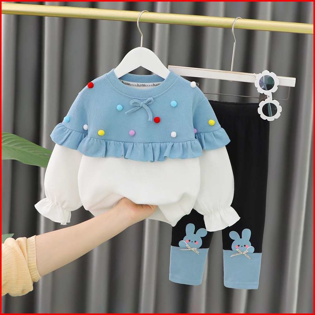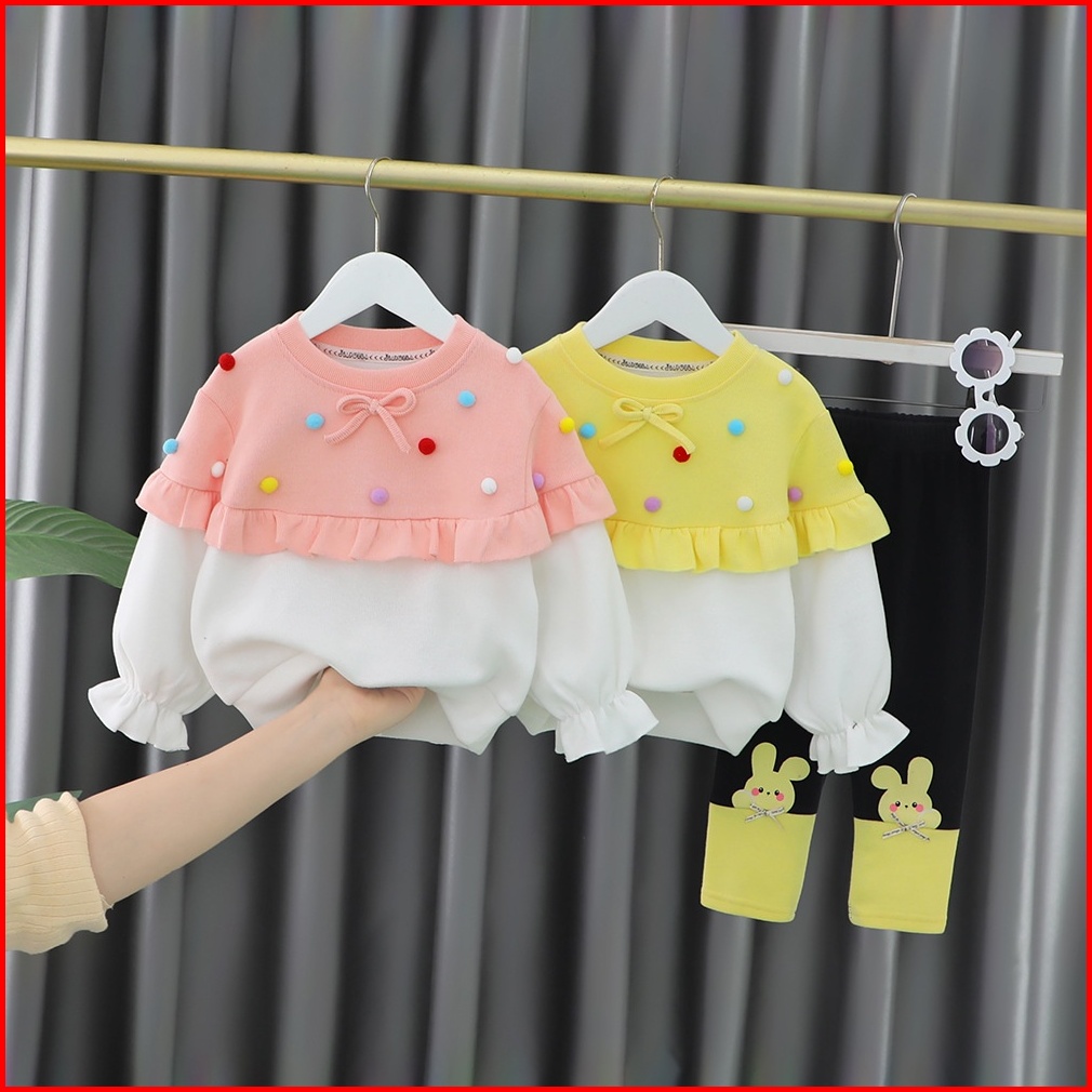 Zahra Setelan Baju Anak Perempuan Baby Pompom One Set Anak Cewek Umur 6 Bulan - 3 Tahun