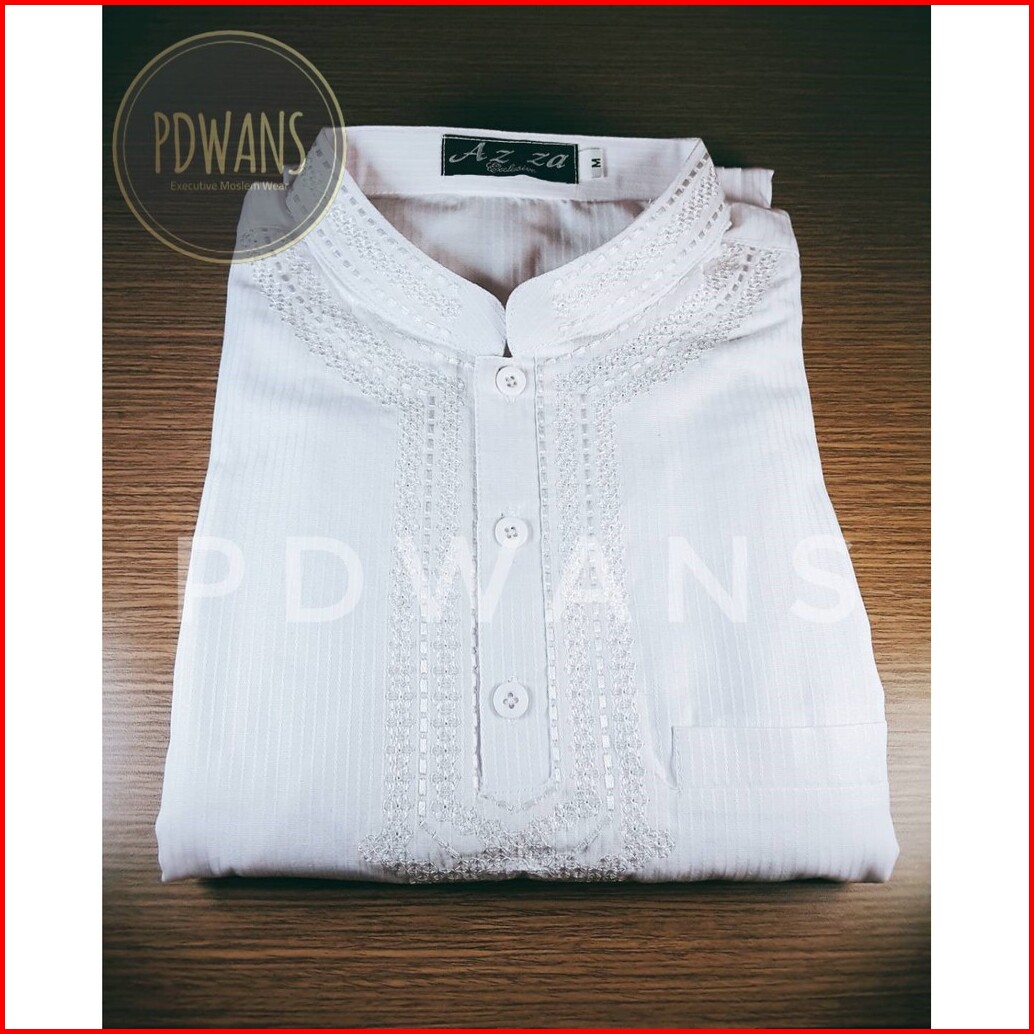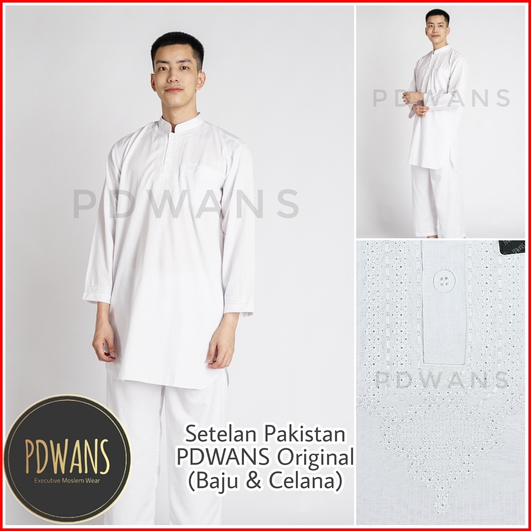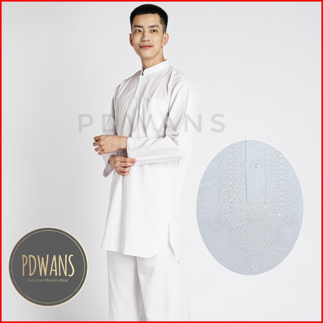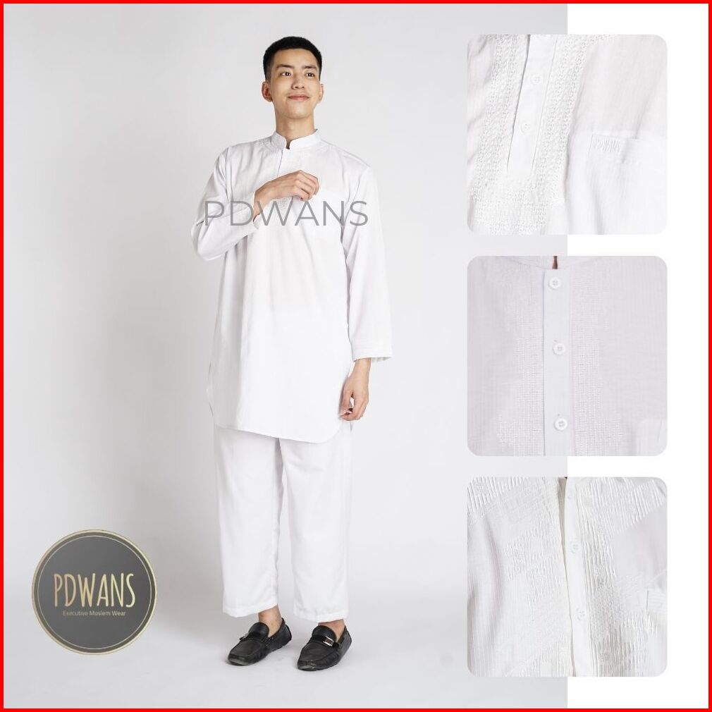 Setelan Pakistan Dewasa Putih Baju Koko Bordir Muslim Pria Baju Umroh