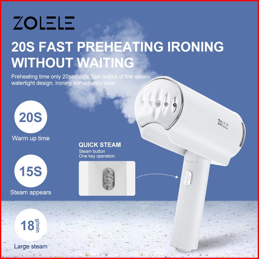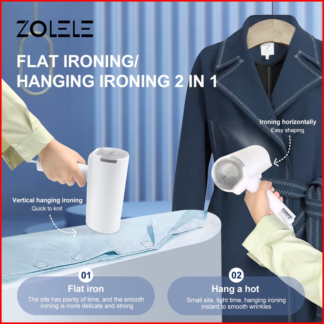 Zolele Setrika Uap Laundry Steam Iron Portable Steam Listrik Handheld Garment Selang Setrika Uap Foldable Elektrik Mini