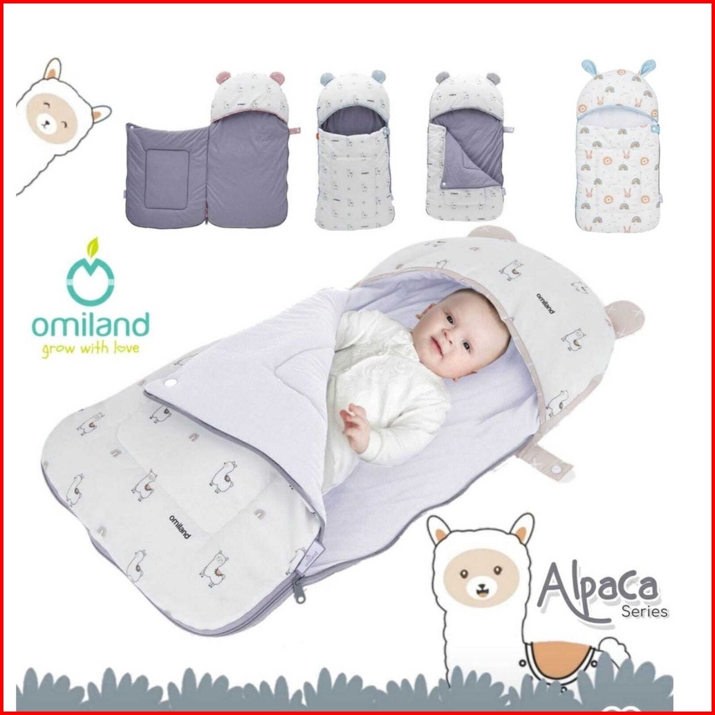 Omiland Sleeping Bag Panda Sloth Rainbow Alpaca Series Kantong Tidur Bayi Selimut Topi Baby Blanket Lembut Dan Hangat Or
