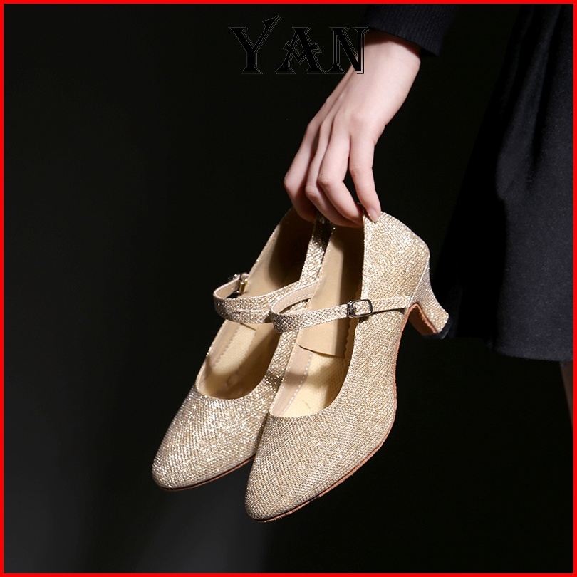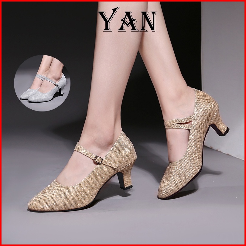 Yan Sepatu Dansa Latin Line Dance Sepatu Hak 5cm Sepatu Dance Wanita