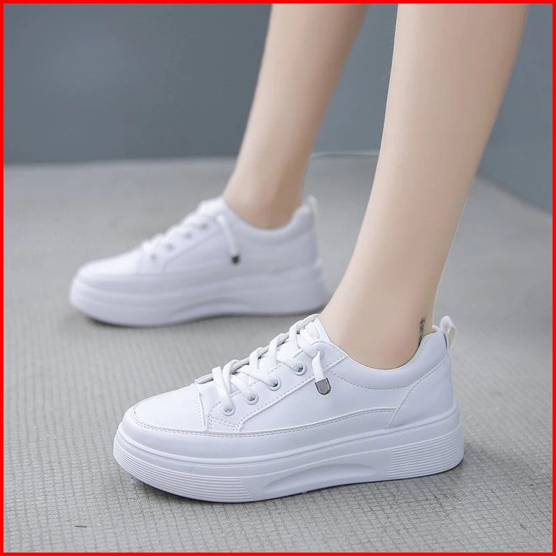 Sepatu Sneakers Wanita Korean 2024 Sepatu Wanita Hitam Putih Polos