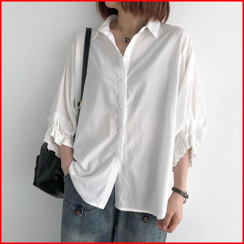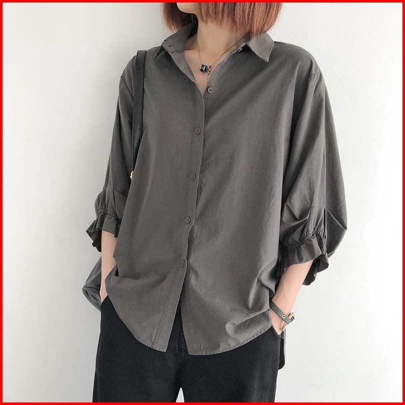 Odelia Shirt Kemeja Basic Wanita Korean Style Kemeja Wanita Lengan Panjang Tangan Kerut Blouse Kerja Wanita Atasan Wanit