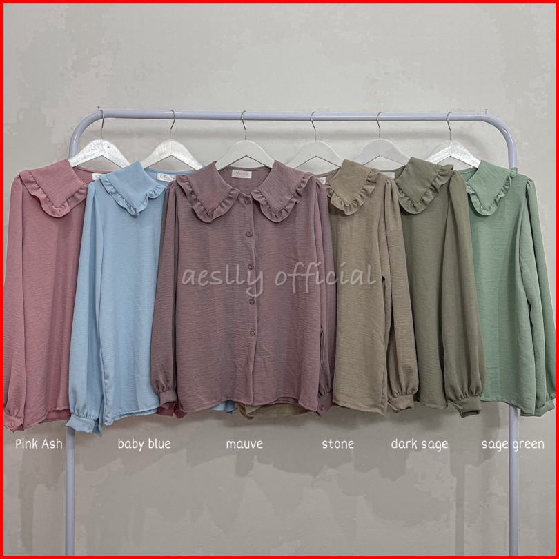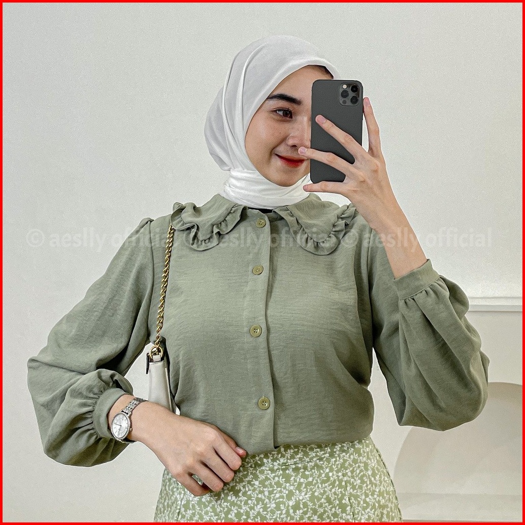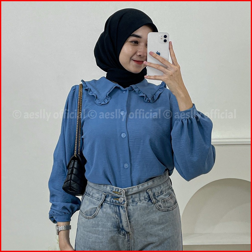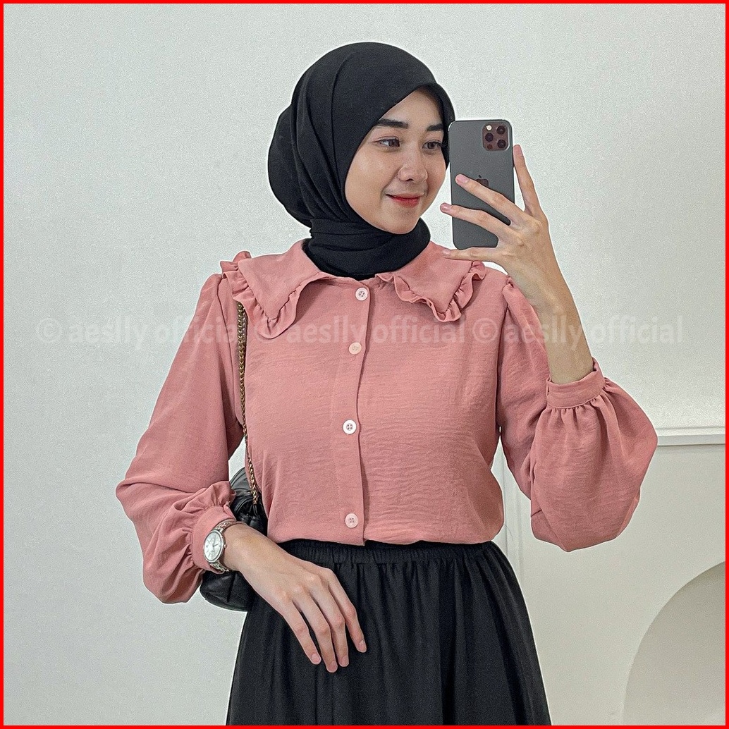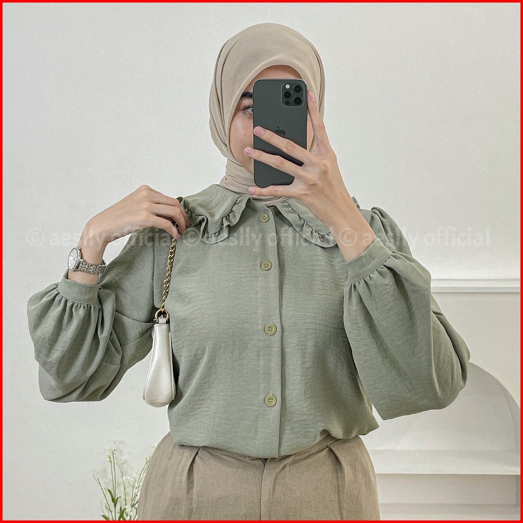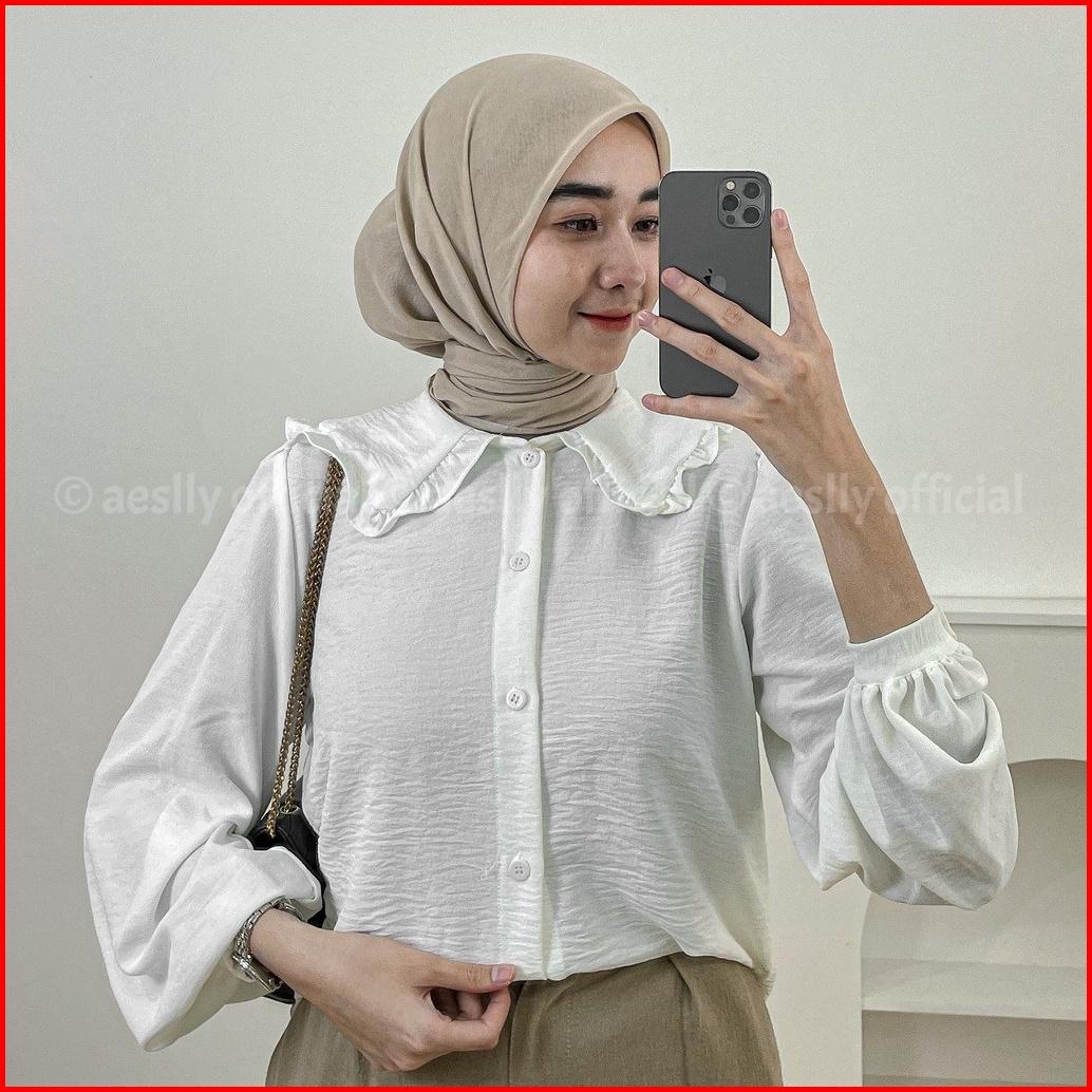 Aeslly - Mannis Blouse Lengan Panjang Balon Atasan Wanita Atasan Polos Baju Kantor Baju Kuliah Kampus Crinkle Cey Airflo
