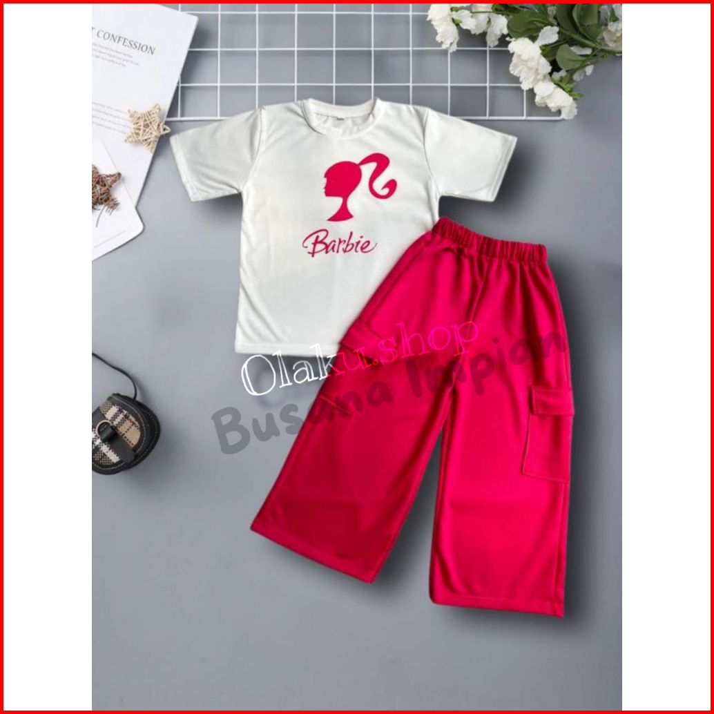 Promo- Setelan Baju Kaos Barbie Celana Kargo Anak Usia 1-12 Tahun Pakaian Anak Perempuan Terbaru Dan Terviral Outfit Ana