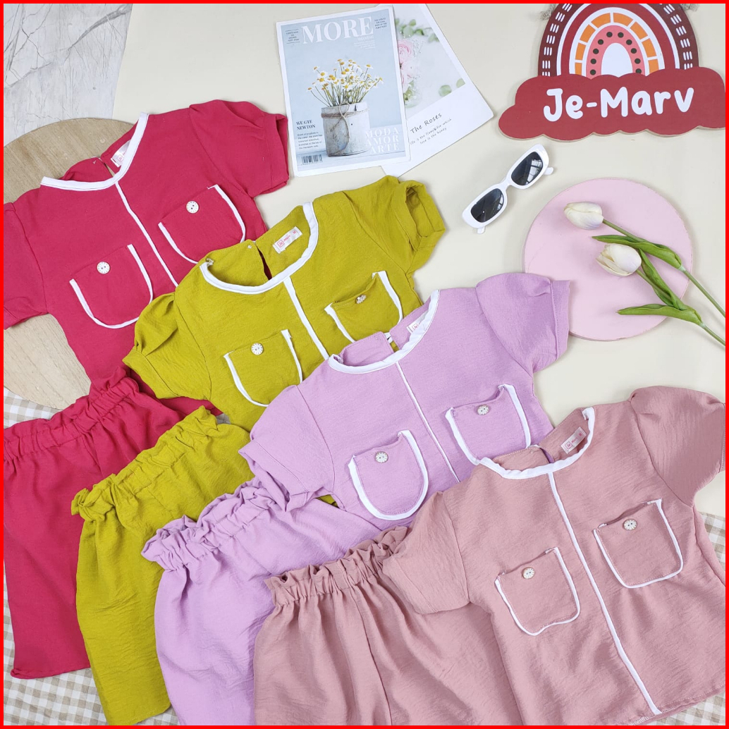 Je-marv. Aurora - Setelan Baju Anak Perempuan Premium Quality - Bahan Cringkel Usia 1 2 3 4 5 6 7 Tahun