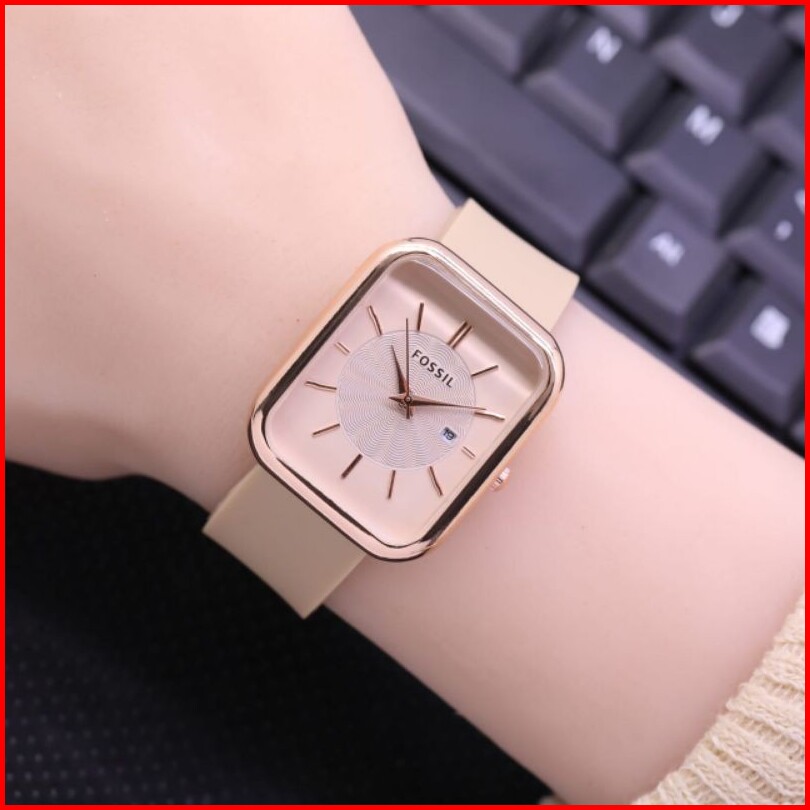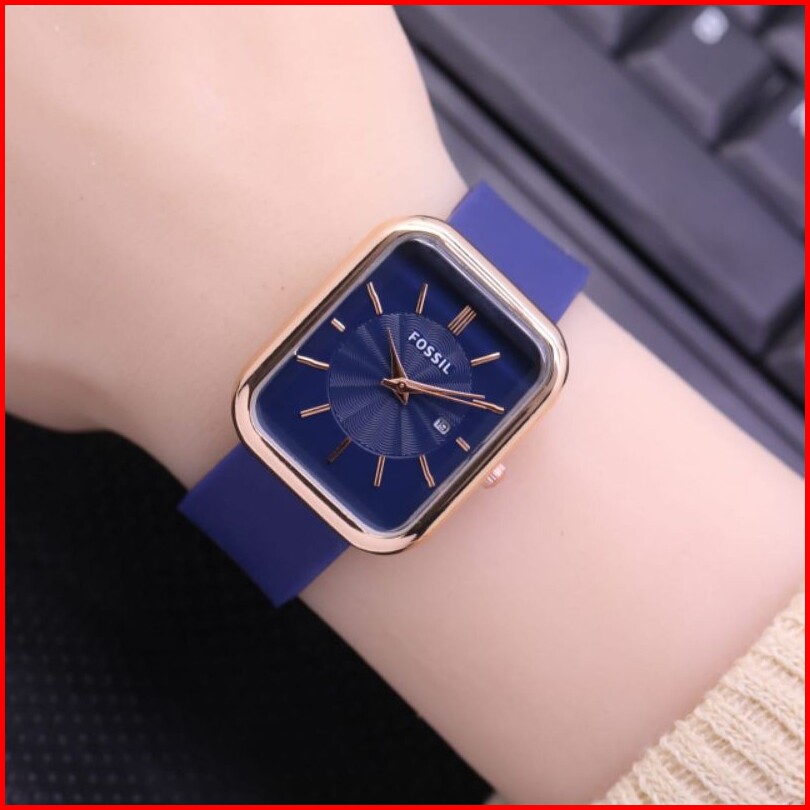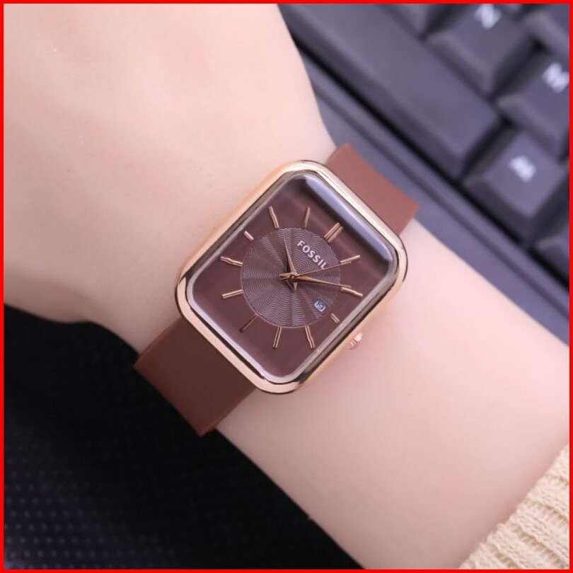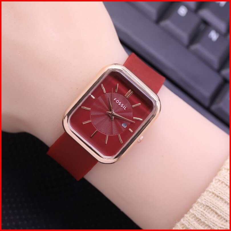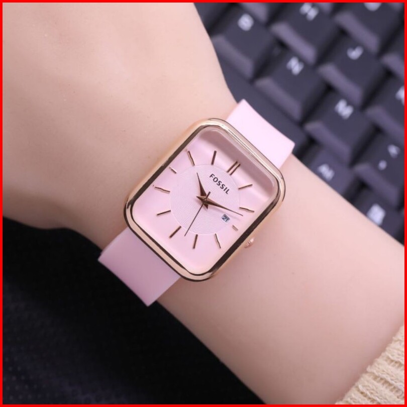 Jam Tangan Wanita Foss Fashion Tali Rubber Tanggal Samping Aktif