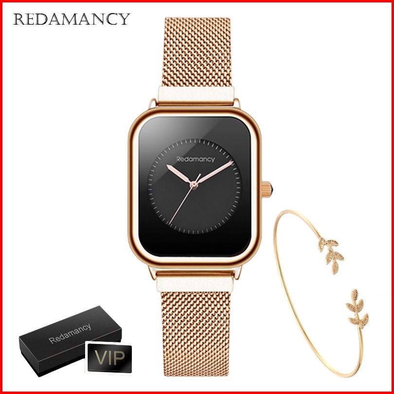 Redamancy Jam Tangan Wanita Original Mode Bisnis Display Kuarsa Jam Wanita Tali Jala Tahan Air Jam Tangan Cewek Jam Rose