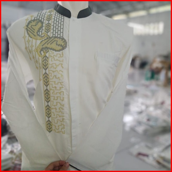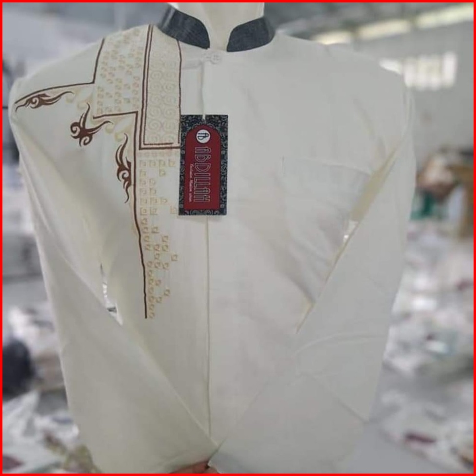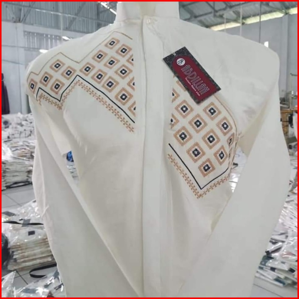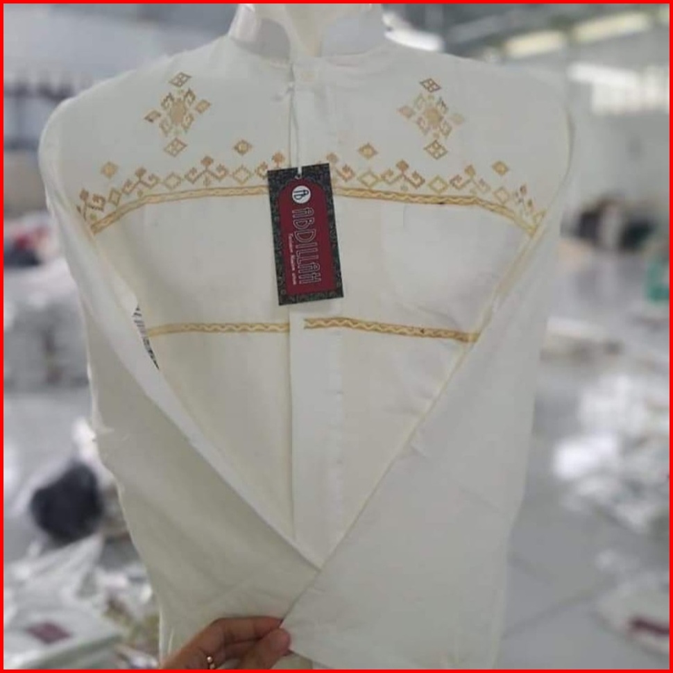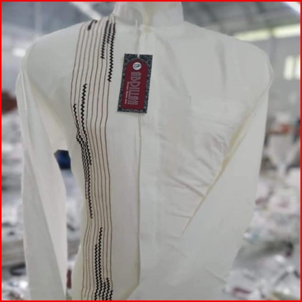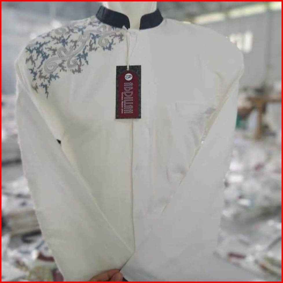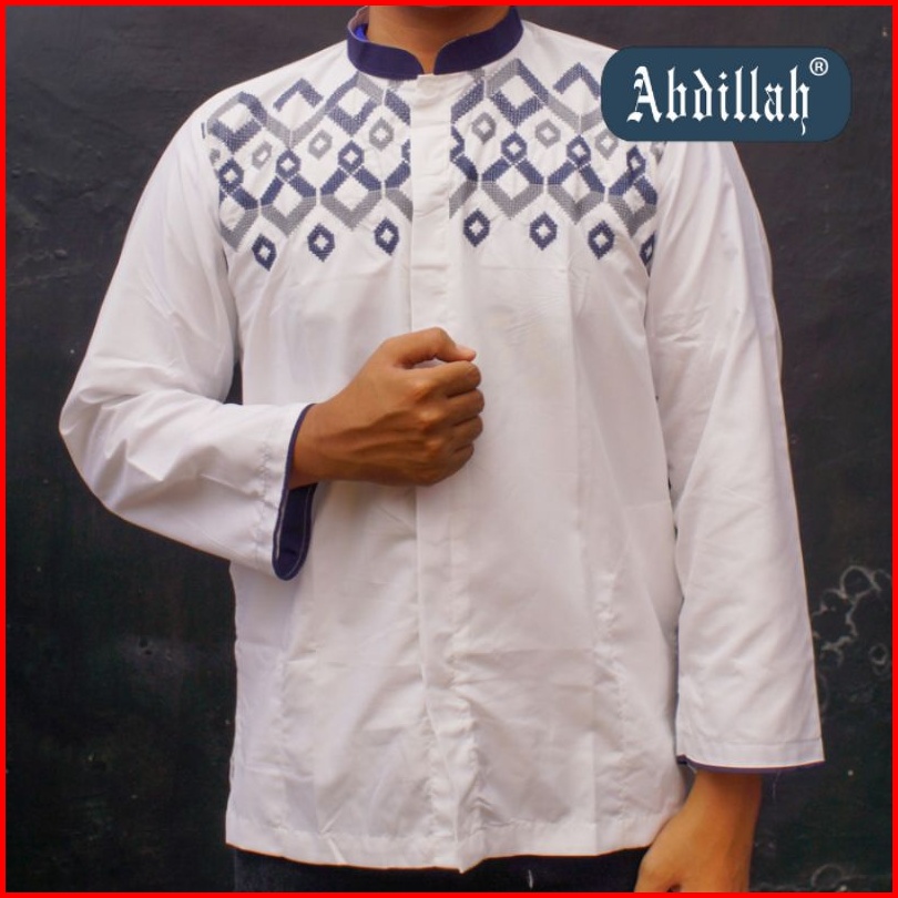 Abdillah - Baju Koko Putih Pria Dewasa Bordir Lengan Panjang Grosir