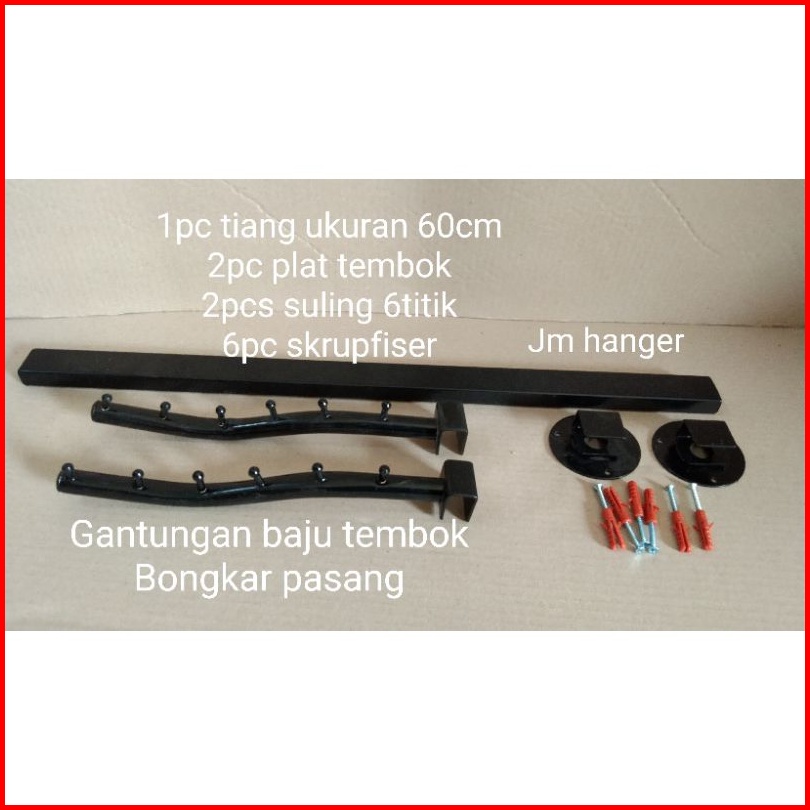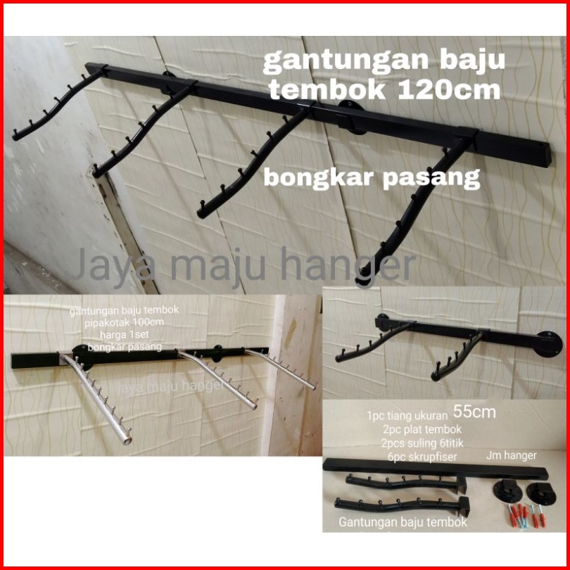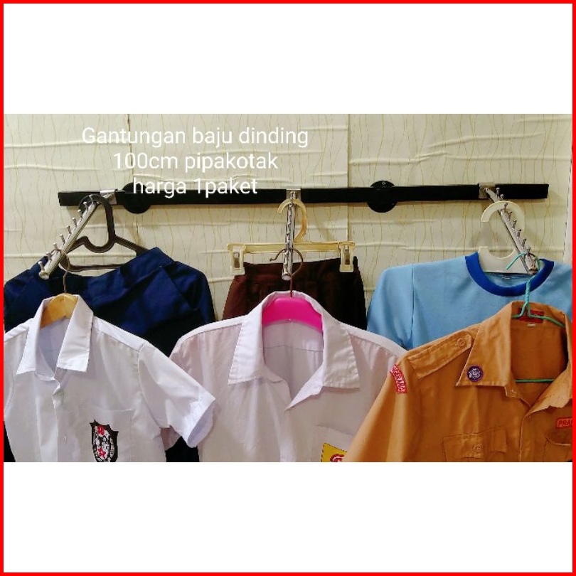 Gantungan Baju Pipa Kotak Gantungan Dinding Pipa Kotak Besi Harga1set