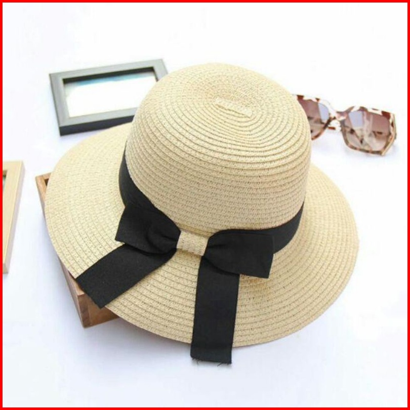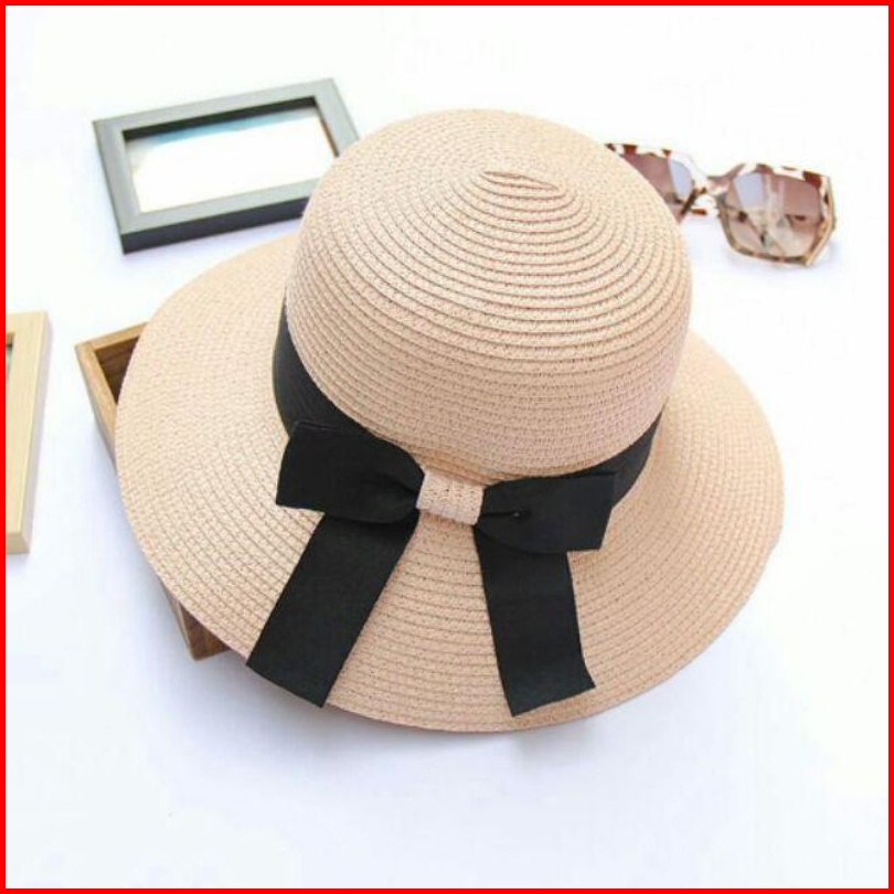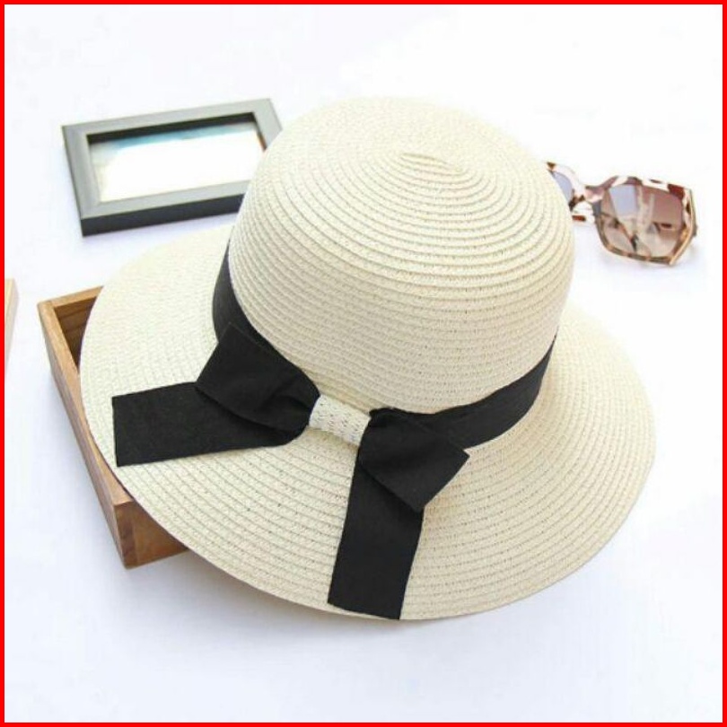 Topi Pantai Oval Po5 Topi Pantai Bucket Pita Hitam Summer Hat