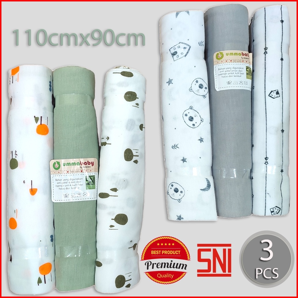 3pcs Bedong Bayi Polos Motif Lucu Sni 110x90 Lembut Halus Selimut Bayi Alas Bayi Murah