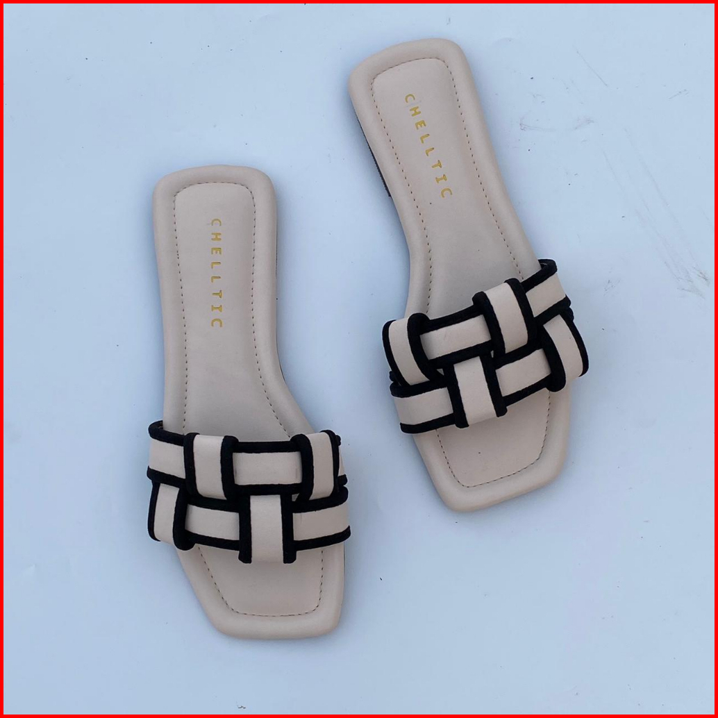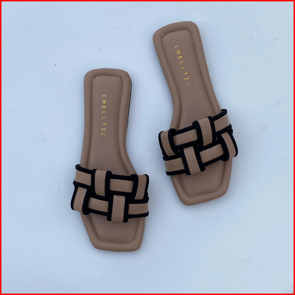 Galaxy Sandal Selop Flat Teplek Wanita Terbaru Sendal Rumah Casual Selop Slip On Cewek Motif Anyam Trendy Nyaman Modis D