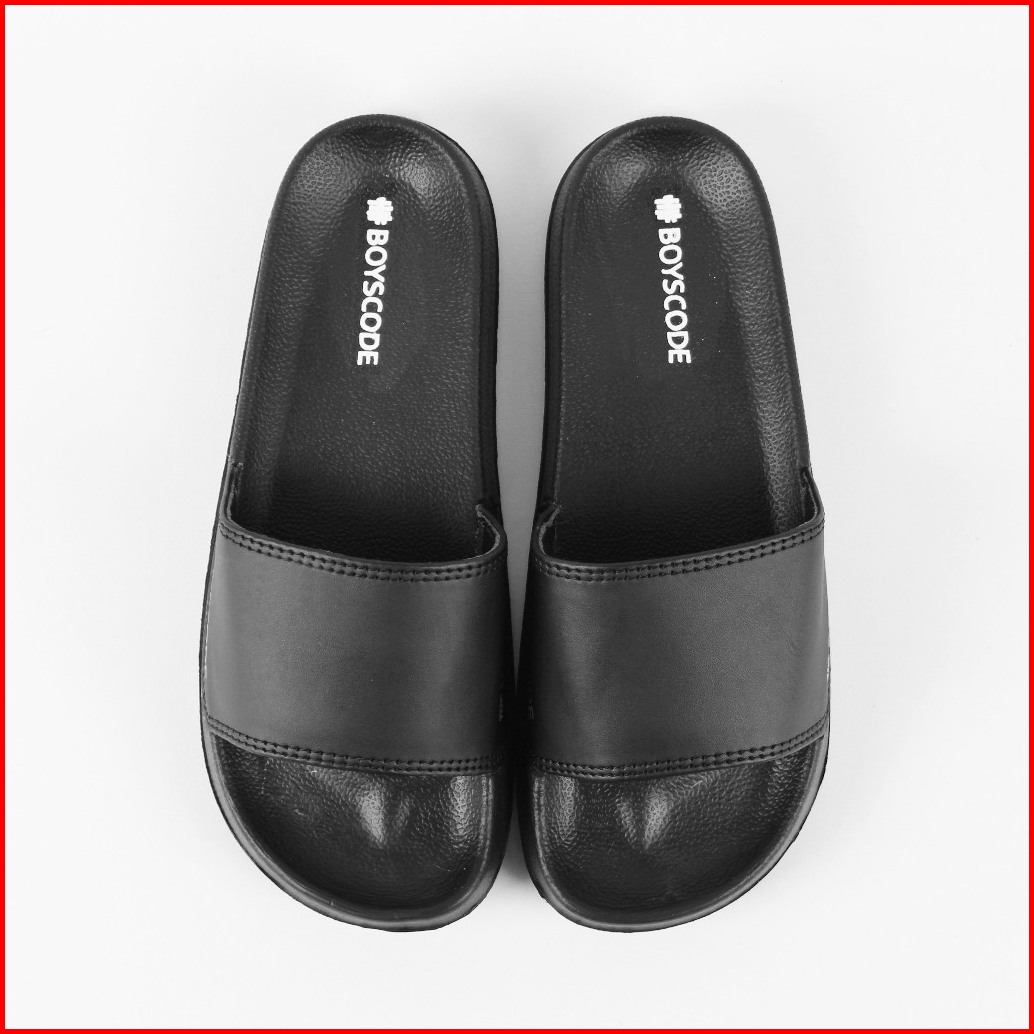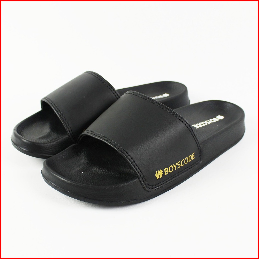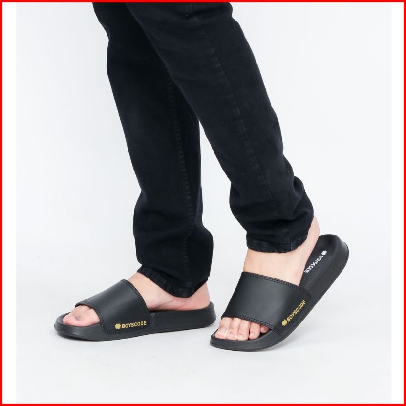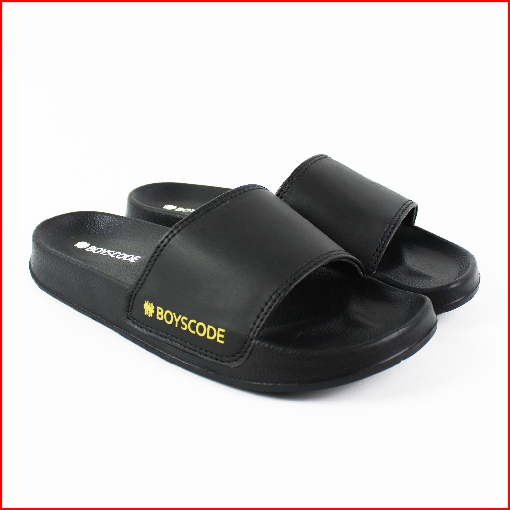 Sandal Slip On Pria Distro Terbaru Boyscode Side Font Hitam Sandal Slop Pria Sandal Slide Pria