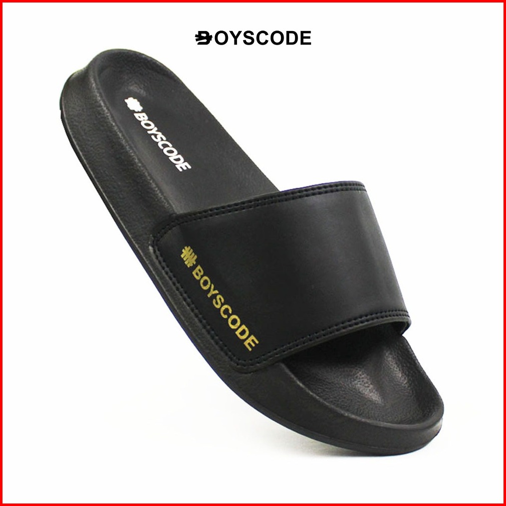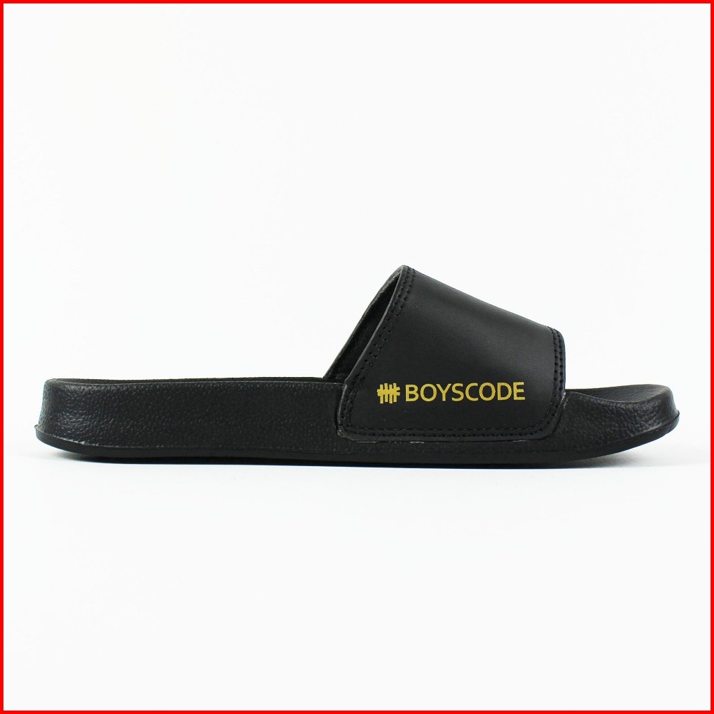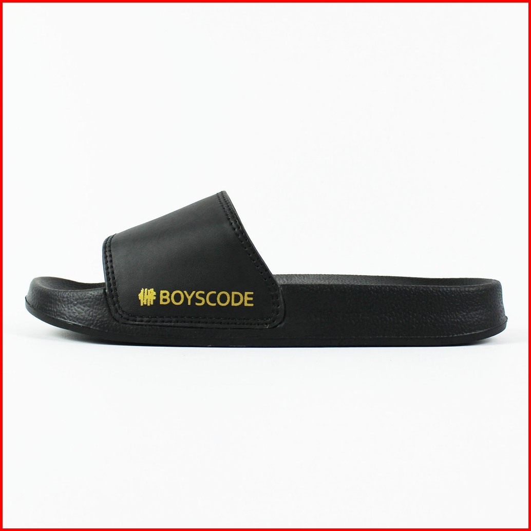 Sandal Slip On Pria Distro Terbaru Boyscode Side Font Hitam Sandal Slop Pria Sandal Slide Pria