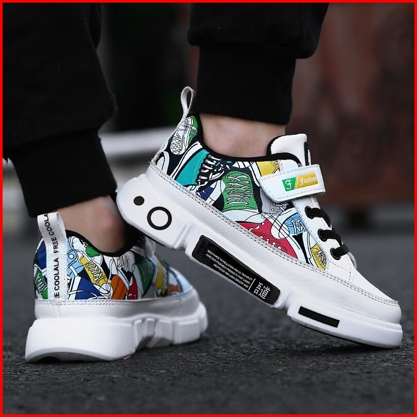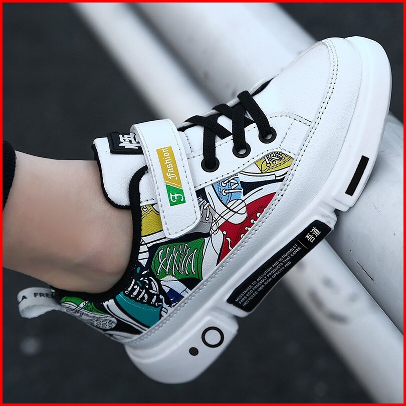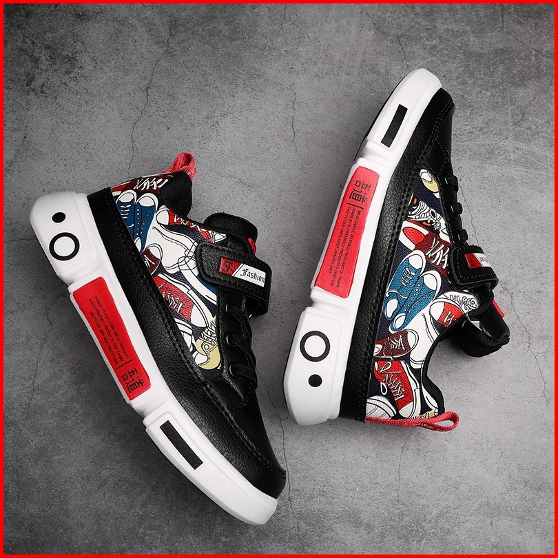 Aning Aningboy - Sepatu Anak-anak Sneakers Warna Hitam Putih Motif Kartun Aneka Ukuran Untuk Sepatu Anak Lakilaki