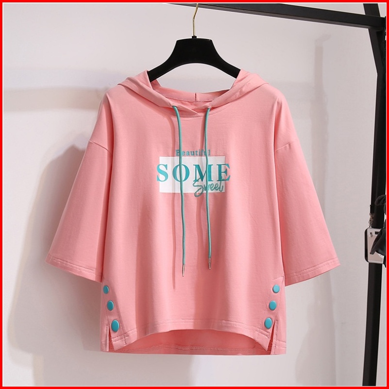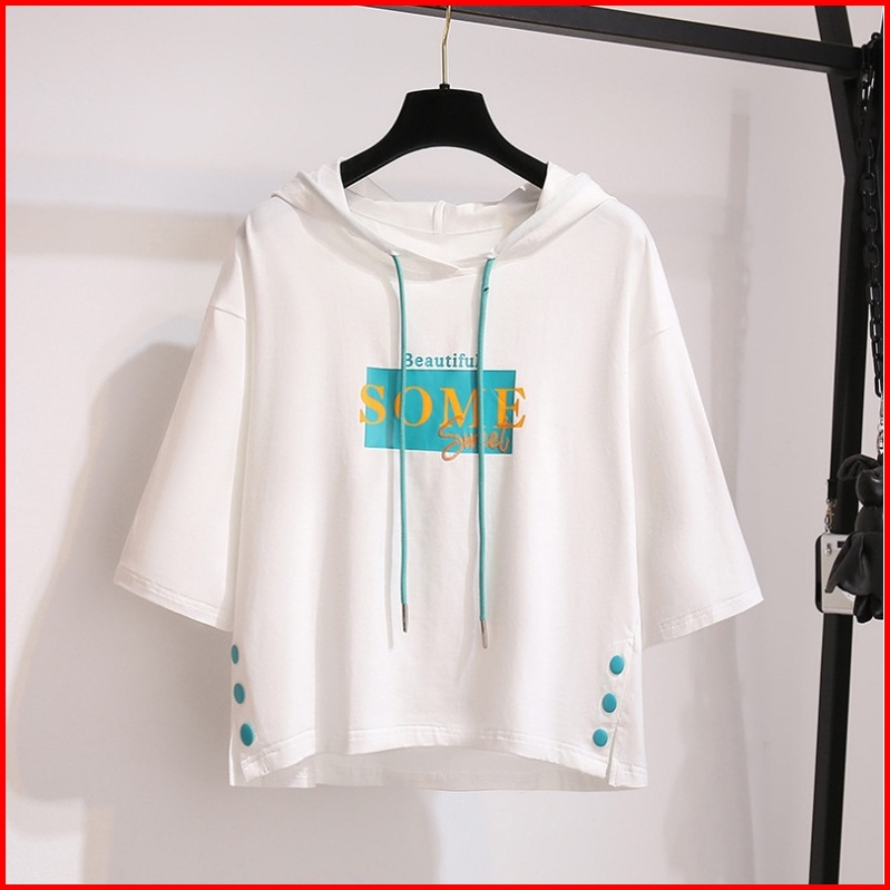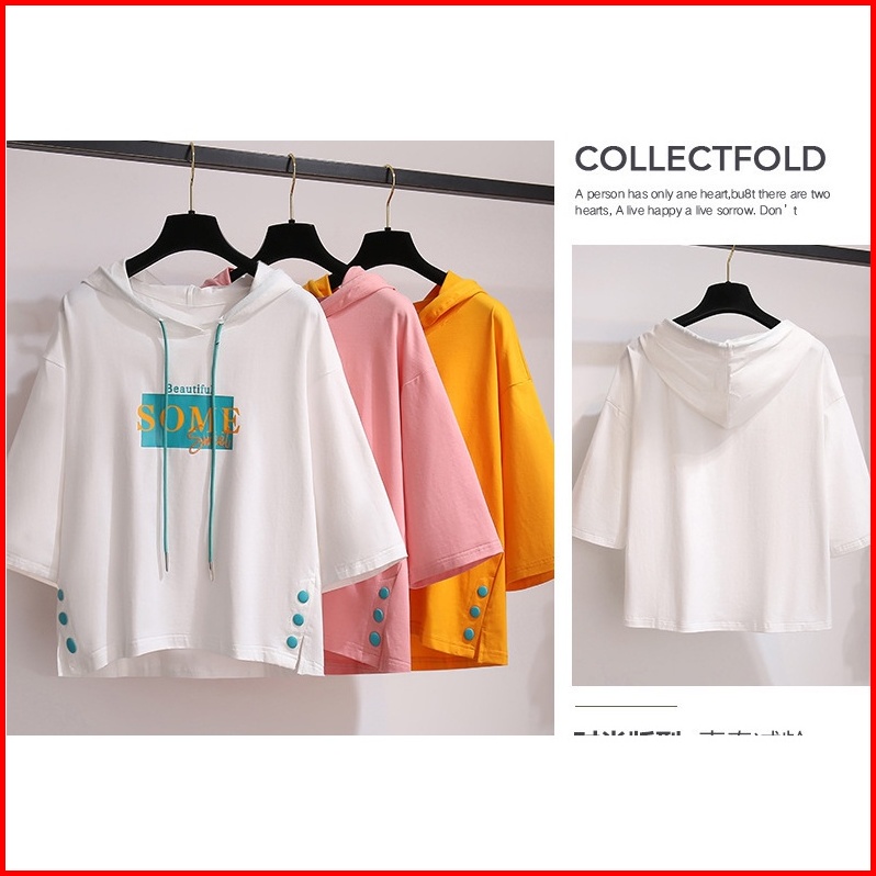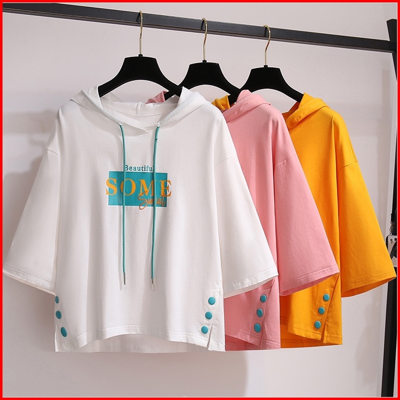 Atasan Bertopi Bertali Baju Wanita Lengan Pendek T-shirt Gaya Korea Pakaian Wanita Longgar Top Pakaian Wanita Pakaian Su