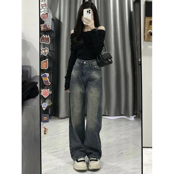 Celana Jeans Wanita High waist Baggy Jeans Hangover Celana Kulot Loosepant Gombrong Jumbo Premium Kekinian Terbaru