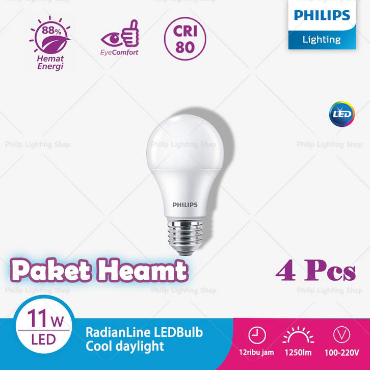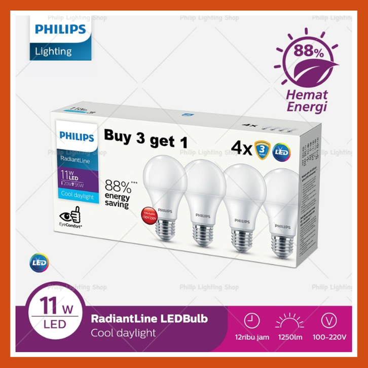 [Star] Lampu Rumah LED Philips 11W 4Pcs -Philips lighting RadiantLine Multipack LEDBulb 6500K Putih 9W,10W, 11W,12W