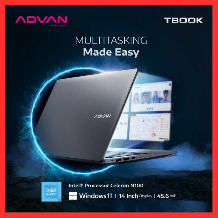 [Star] ADVAN Laptop TBook Intel Celeron N100 Intel N100 4Gb/128GB Upgradable14" HD WIFI 5 Free Windows 11- Garansi Resmi