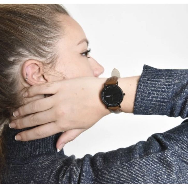 JAM TANGAN WANITA ERUDITE BLACK BROWN 32MM JAM TANGAN ANALOG BAHAN KULIT TERBARU