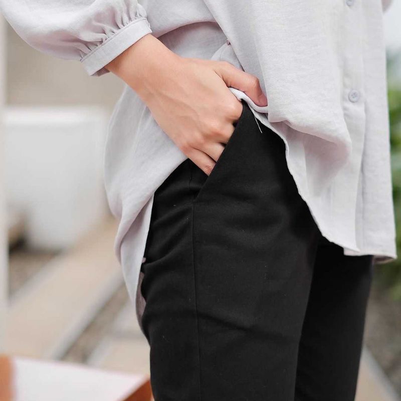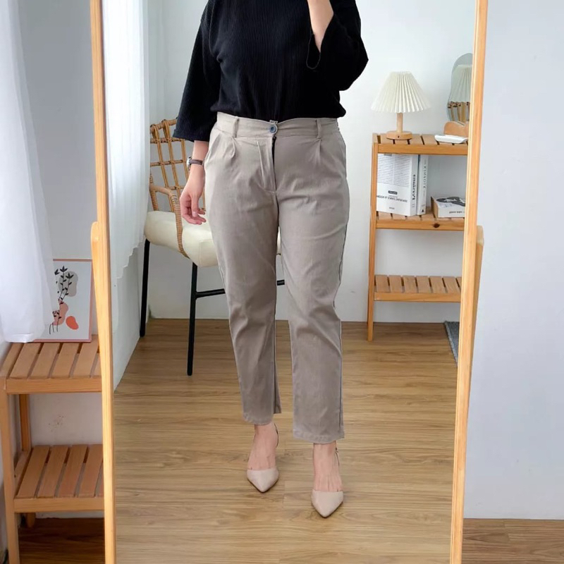 BASIC ANGKLE PANTS CELANA KERJA WANITA MODEL RESLETING DAN PINGGANG KARET