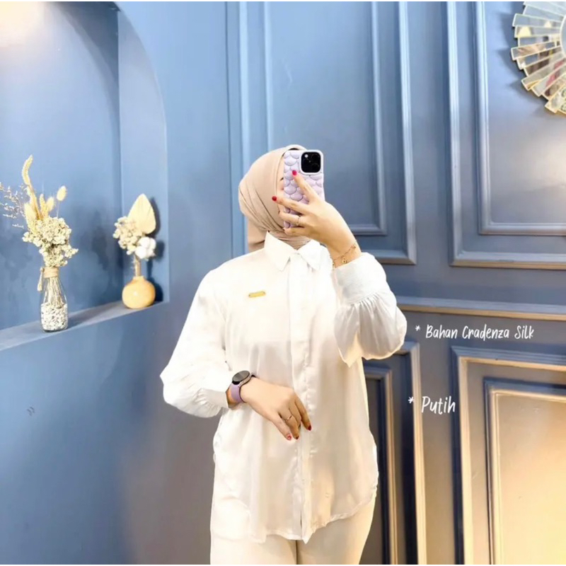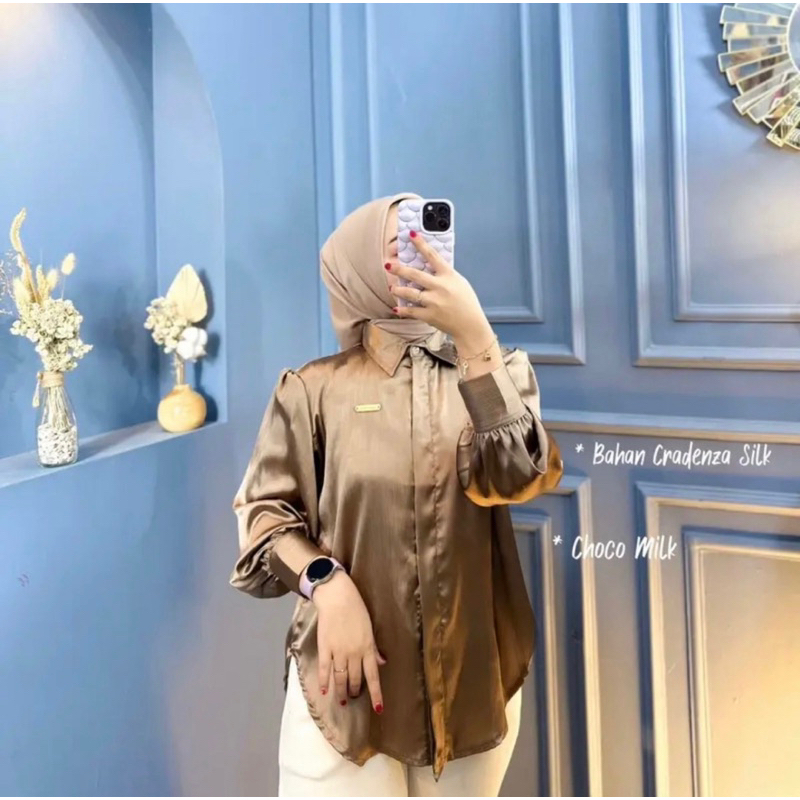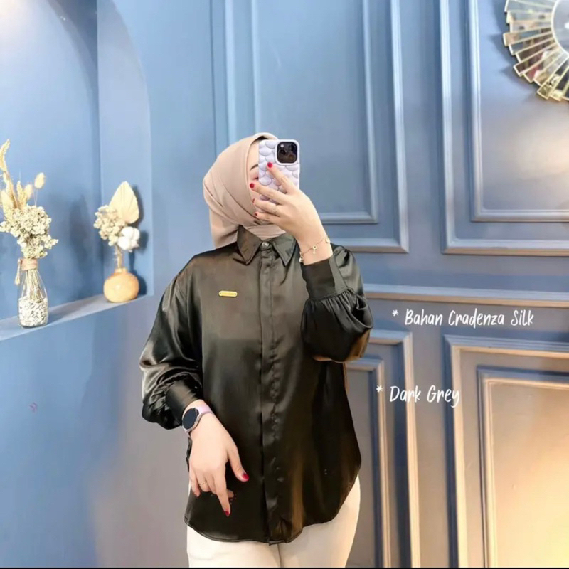 SHIMMER SHIRT ATASAN KEMEJA WANITA BASIC CRADENZA SILK POLOS PREMIUM / KEMEJA FORMAL CASUAL KOREAN LOOK