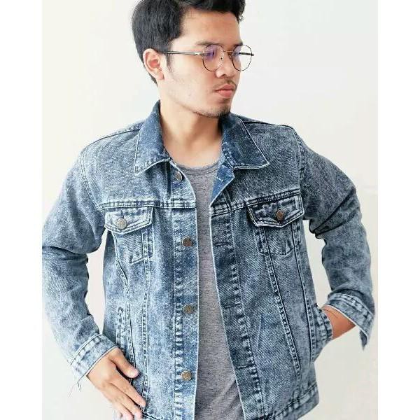 JAKET JEANS SANDWASH BLACK & JAKET JEANS SANDWASH HITAM & JAKET COWOK & JEANS COWOK