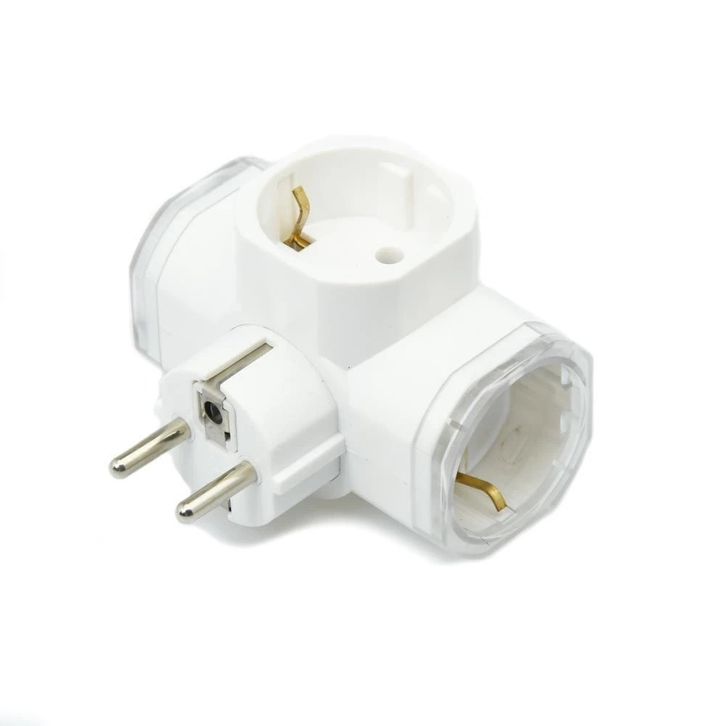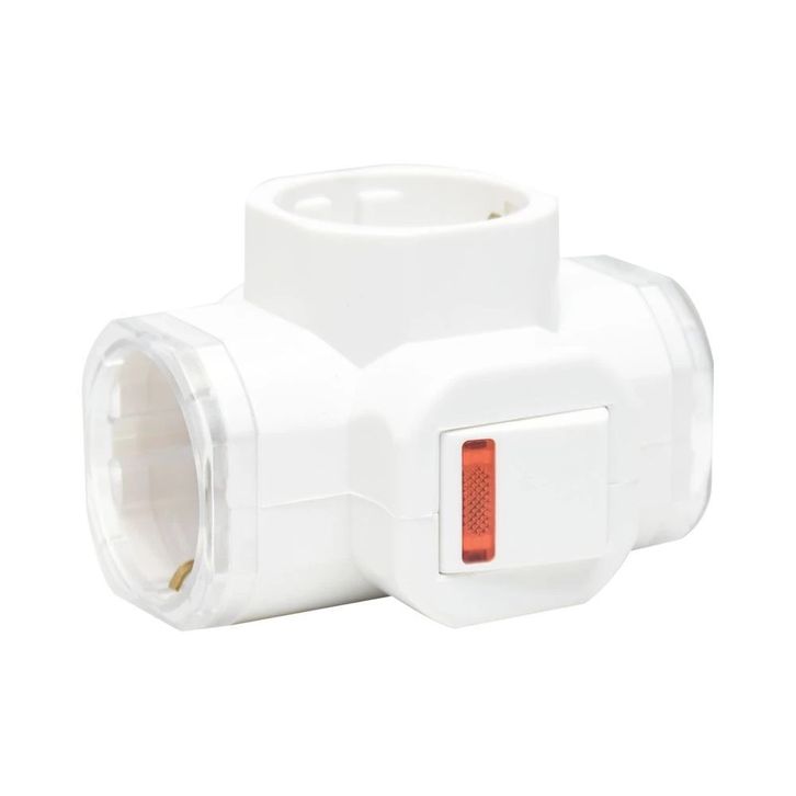 Steker T-Arde 3 Arah Dengan Switch - Putih Electric Socket Soket Cabang Adaptor Colokan Peralatan Elektronik Extension