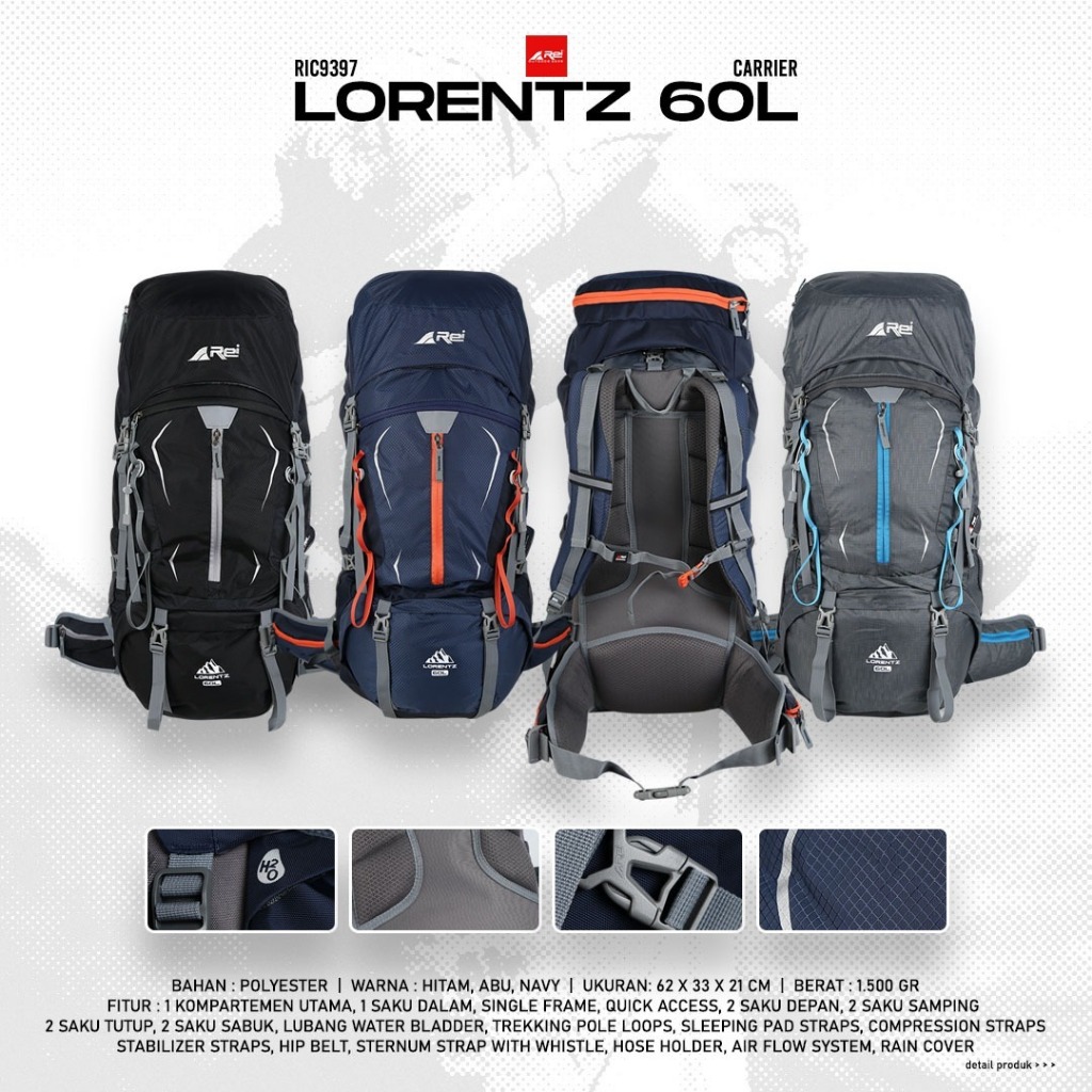 Tas Gunung/Carrier Lorenz 60 Liter Arei Outdoorgear
