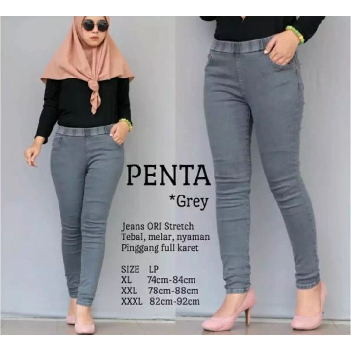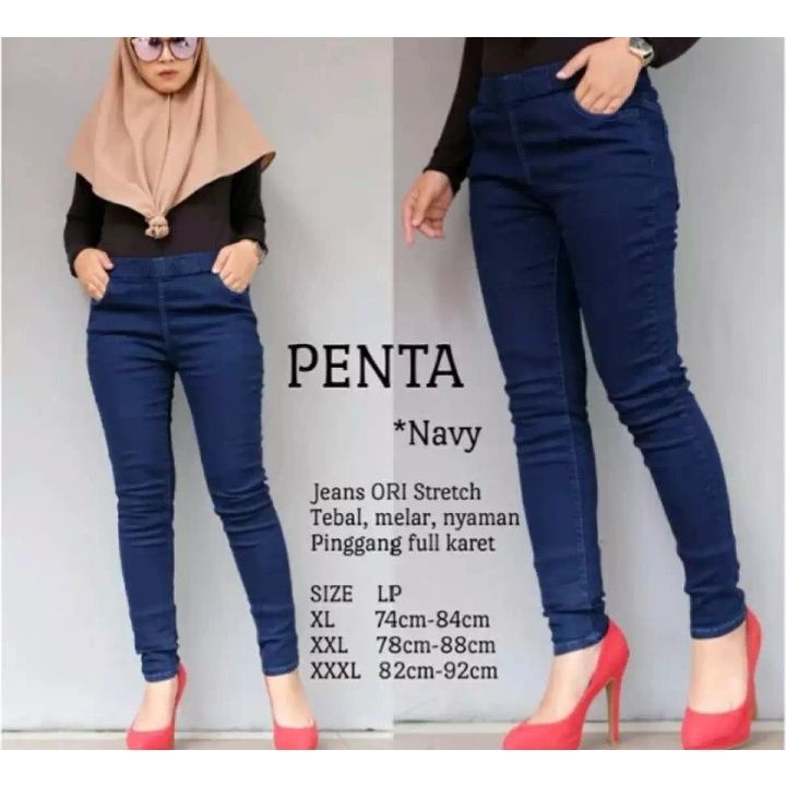 Celana Jumbo - Jeans Premium Wanita - Jumbo - Pinggang Karet - Melar - Street