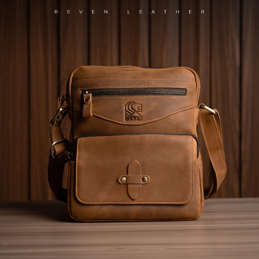 Reven Leather Rover Bag - Tas Selempang Pria Kulit Sapi Asli Free Random Gift - klt02