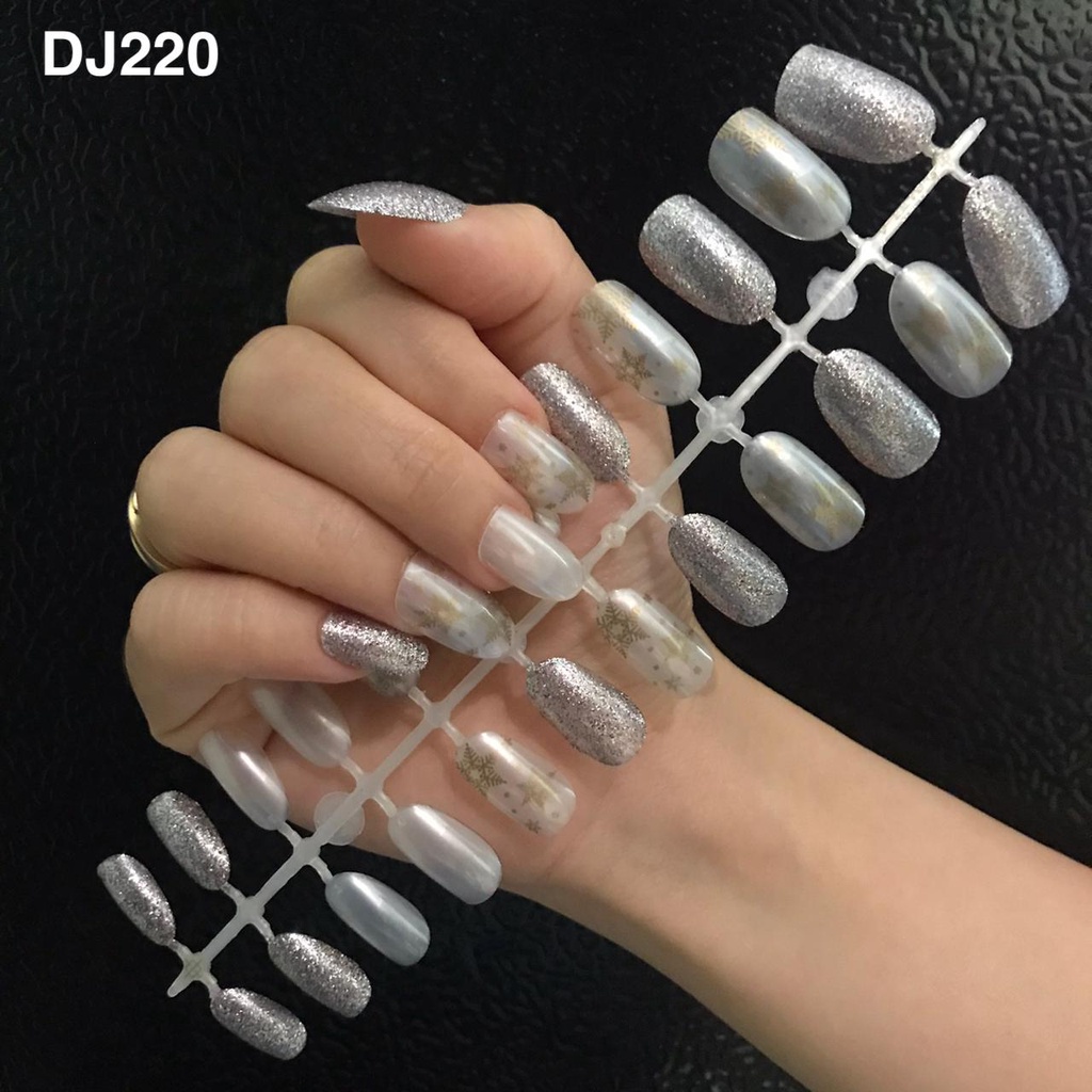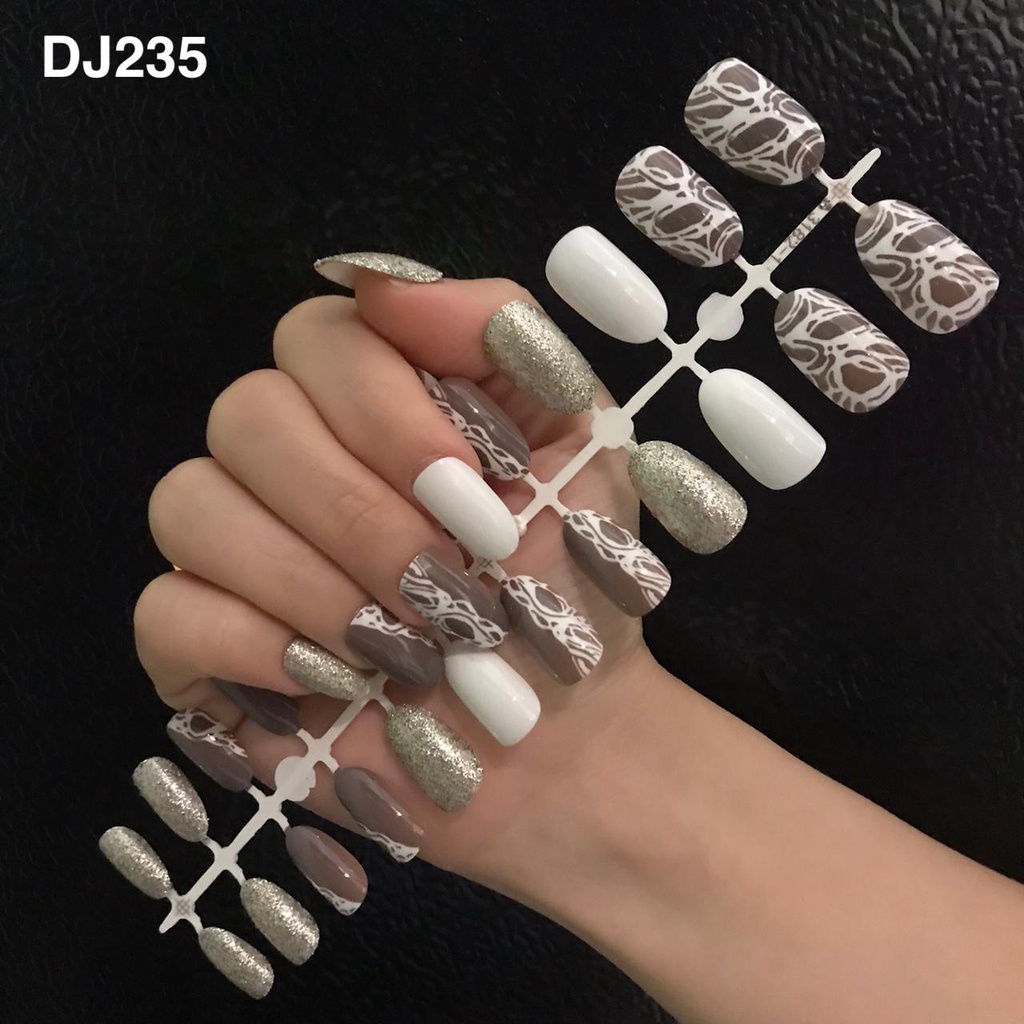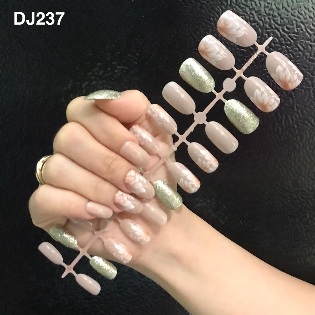 24PCS KUKU PALSU MURAH MOTIF / FAKE NAILS MOTIF GLITER GLOSSY NUDE / NAIL ART KUKU PALSU
