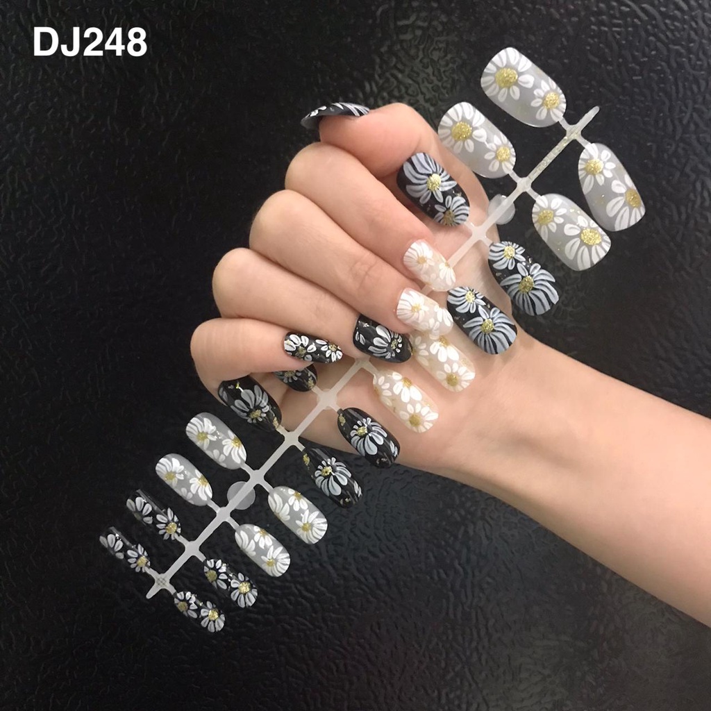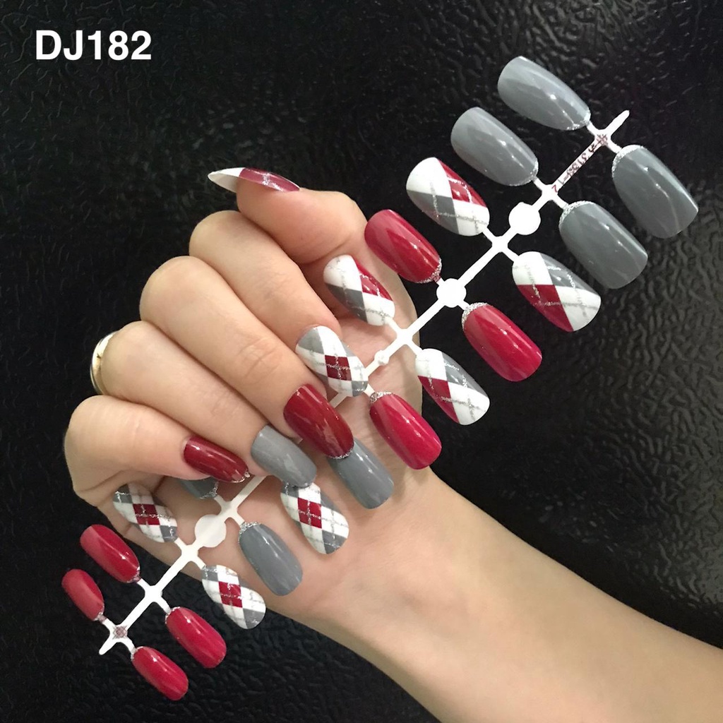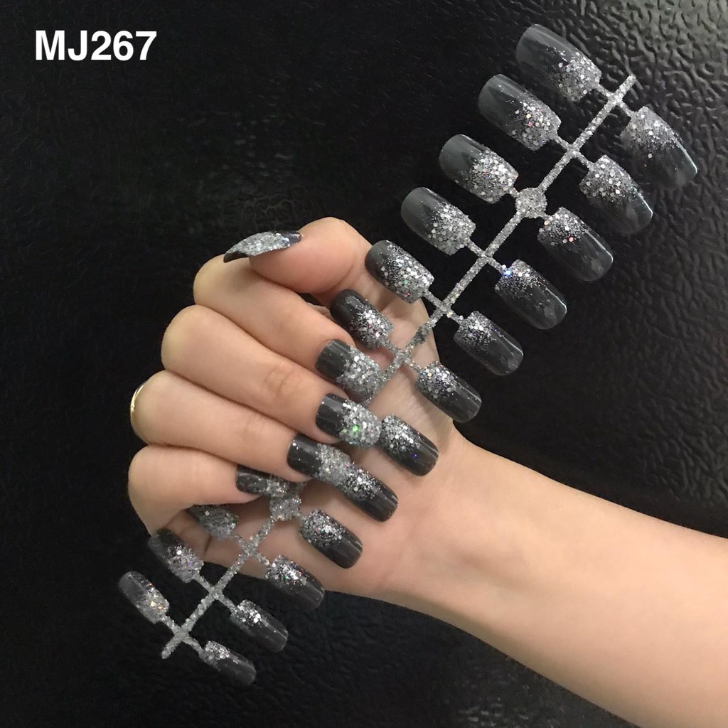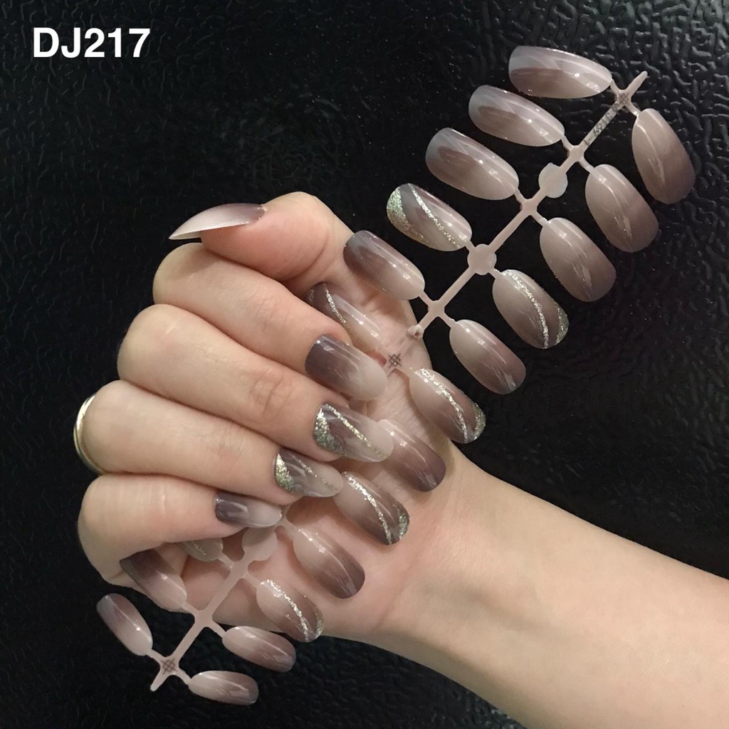24PCS KUKU PALSU MURAH MOTIF / FAKE NAILS MOTIF GLITER GLOSSY NUDE / NAIL ART KUKU PALSU