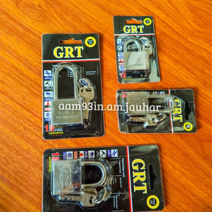 Gembok GRT 30 mm Leher Pendek / Panjang Besi Baja Tahan Karat kunci Pagar Kantor Gudang Gerbang Anti Maling 105 Gram