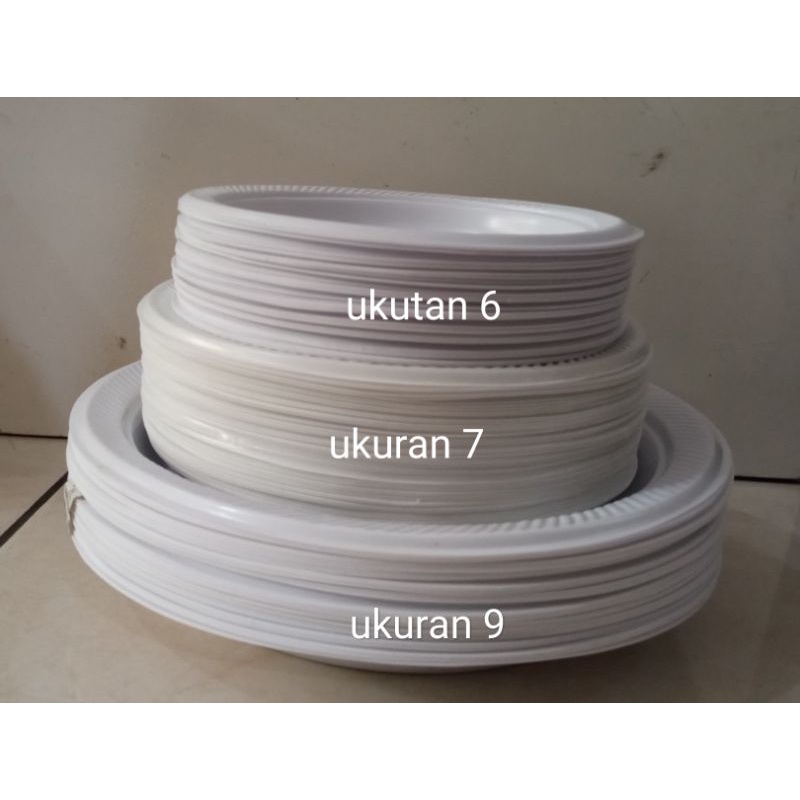 PIRING MIKA PUTIH / PIRING PLASTIK UKURAN P9 P7 P6 ISI 50PCS