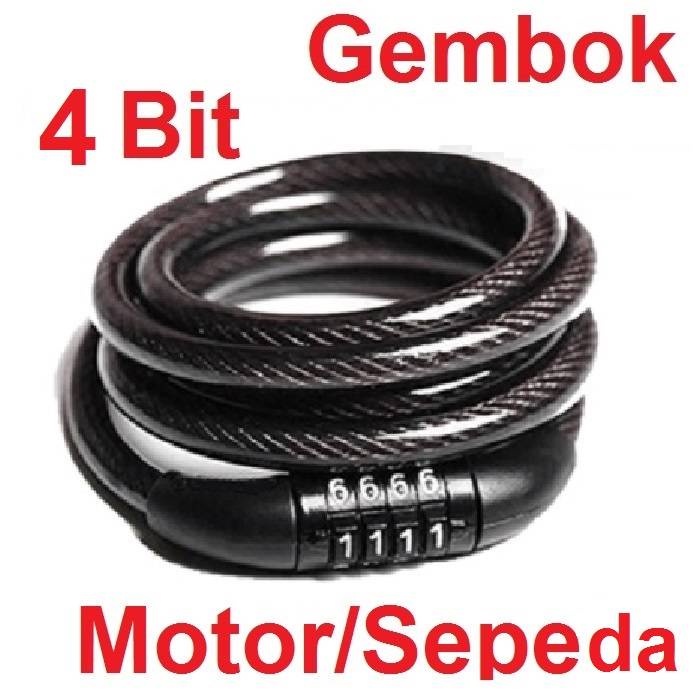 GEMBOK KUNCI PENGAMAN SEPEDA MOTOR HELM PAGER KOMBINASI KODE ANGKA 4 5 DIGIT KABEL BAJA