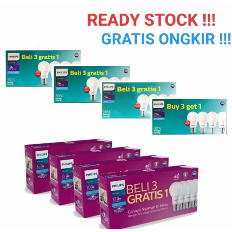 LAMPU PHILIPS LED PAKET 5W 6W 7W 8W 9W 10W 11W 12W PAKET HEMAT MULTIPACK ESSENTIAL MYCARE BELI 3 GRATIS 1