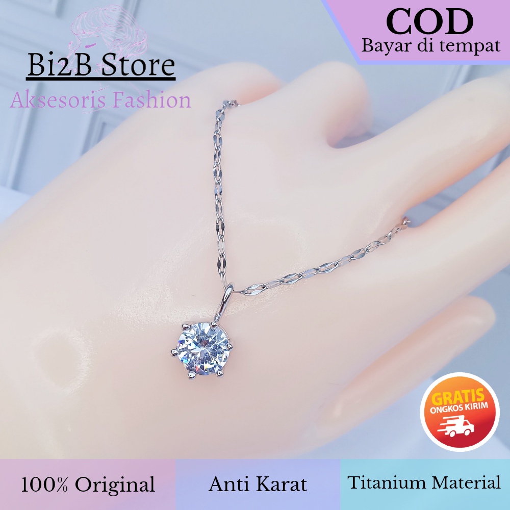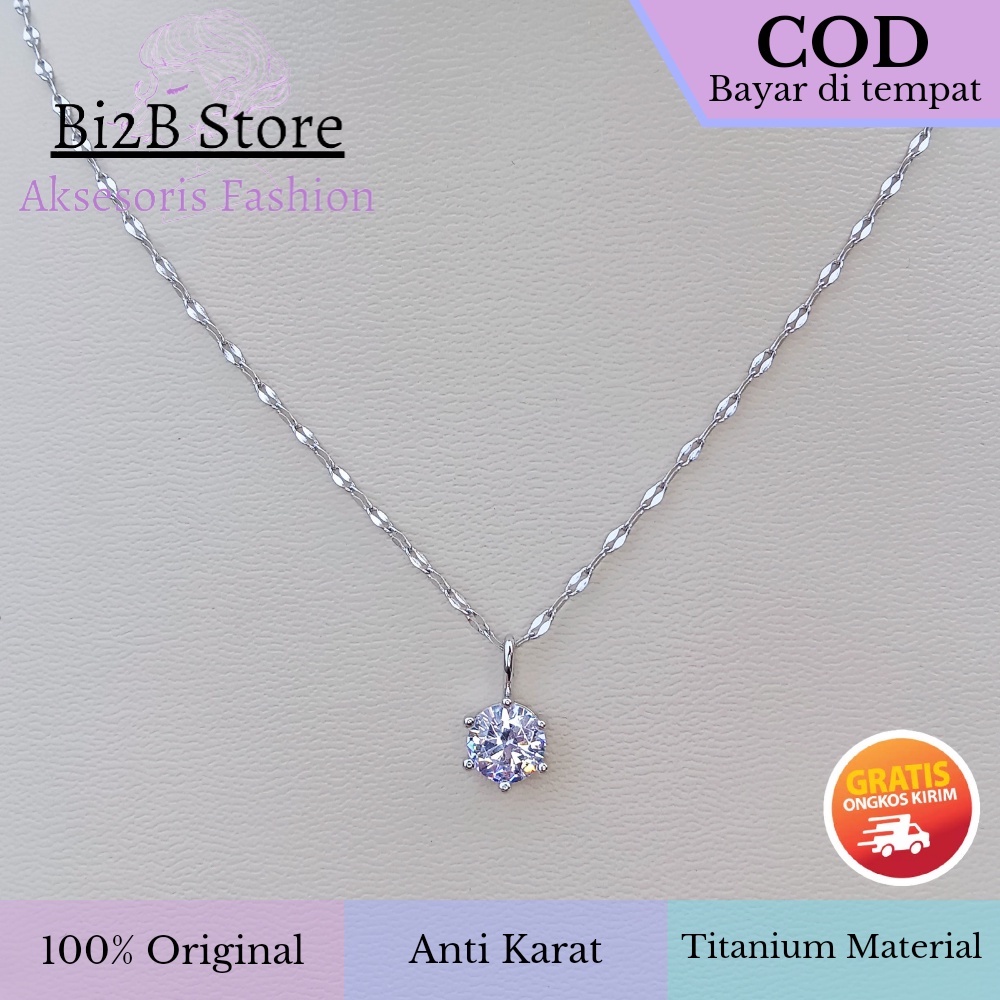 KALUNG WANITA DEWASA DLOR TITANIUM ANTI KARAT LIONTIN MEWAH ZIRCON BI2B KT-2919 - SILVER ROSEGOLD