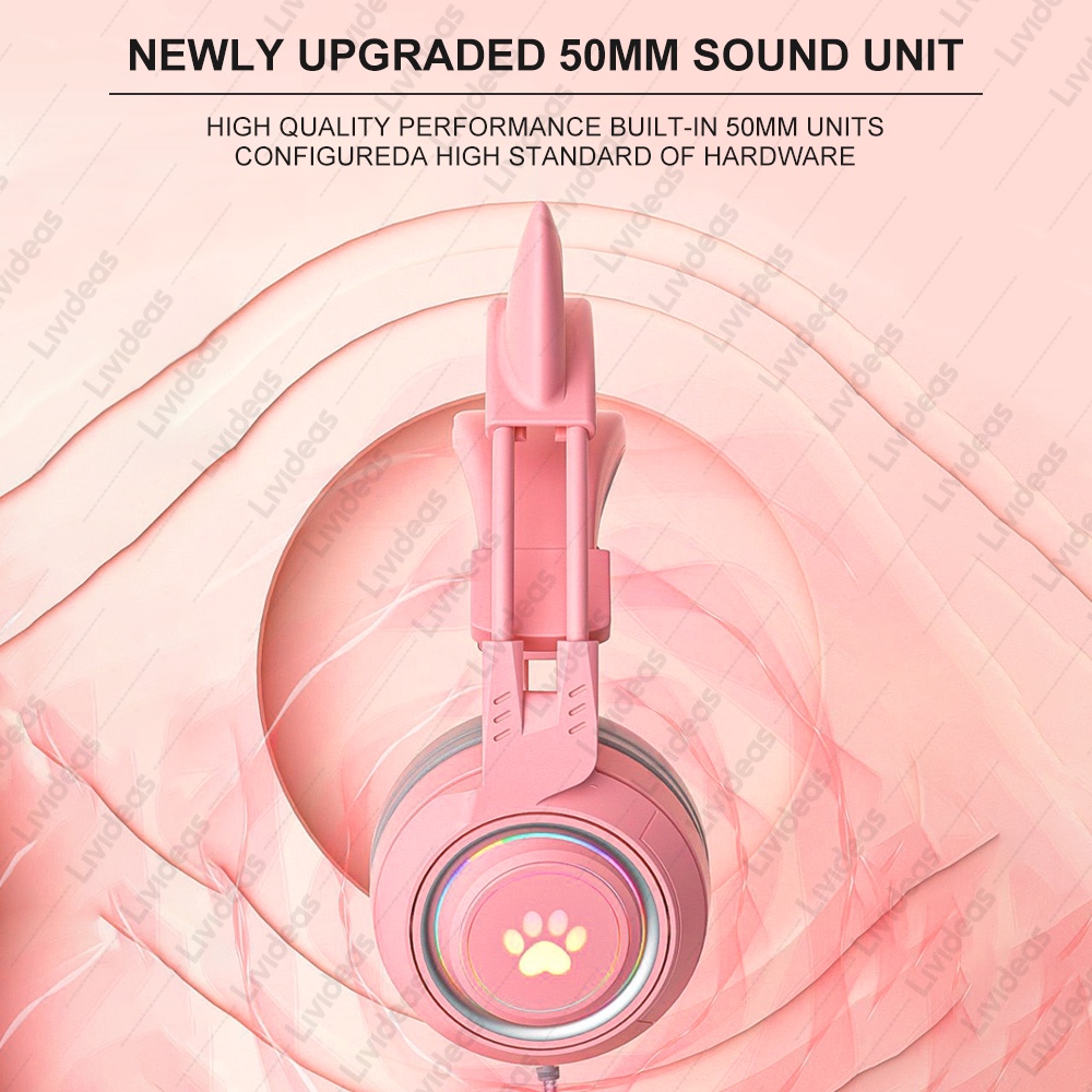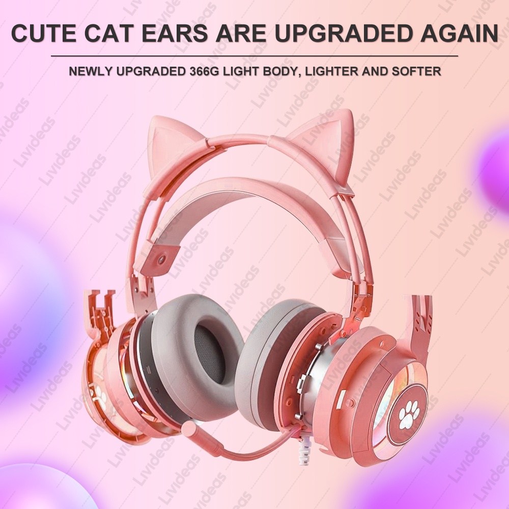 LIVIDEAS HEADPHONE KUCING RGB TELINGA KUCING HEADSET GAMING MICROPHONE EARPHONE CAT CUTE SY-G25