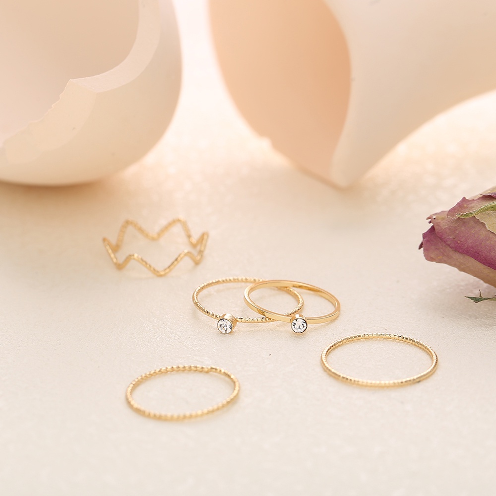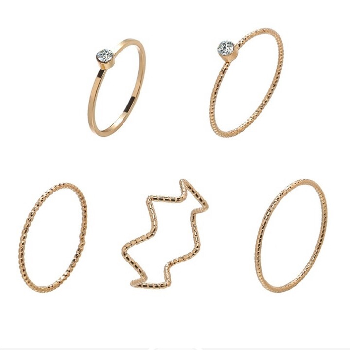 5PCS/SET CINCIN KOREA AKSESORIS WANITA GAYA BELT DIAM0ND RING RETRO
