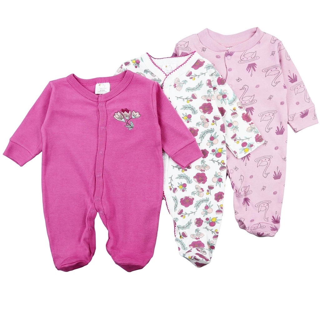 LITTLESUMMERISE - 3PCS SLEEPSUIT BAYI 0-9BULAN PAKET PIYAMA BABY BAJU TIDUR