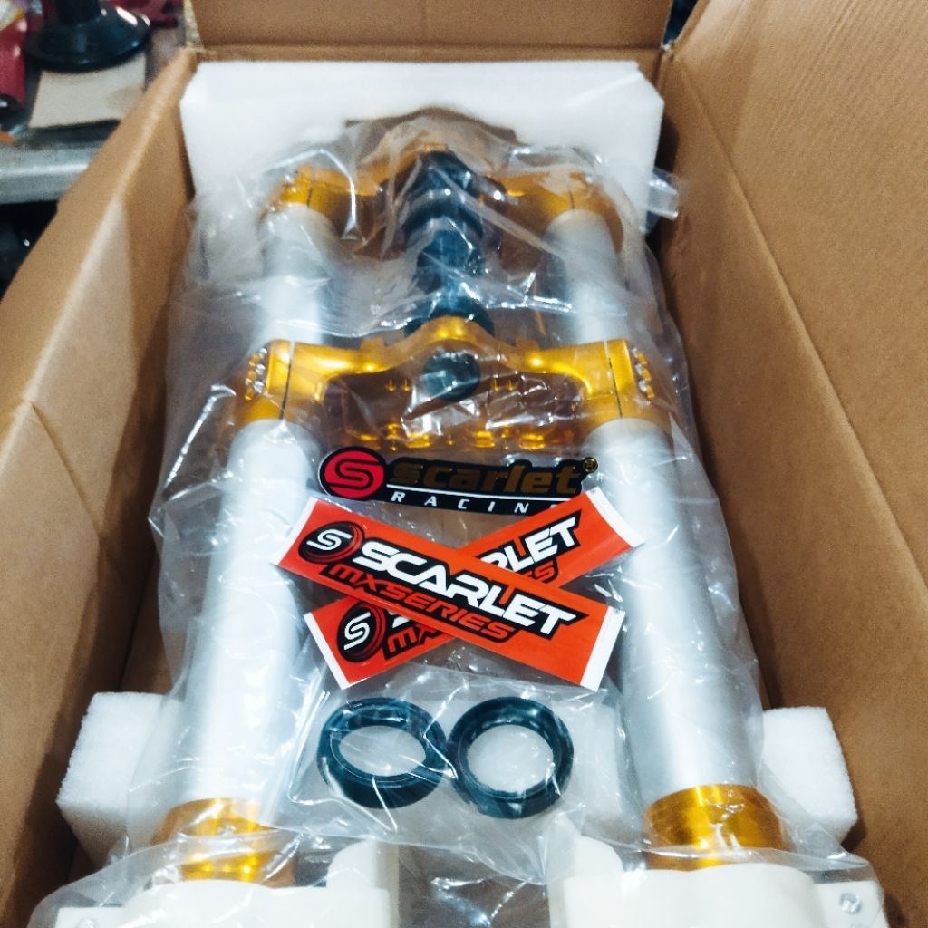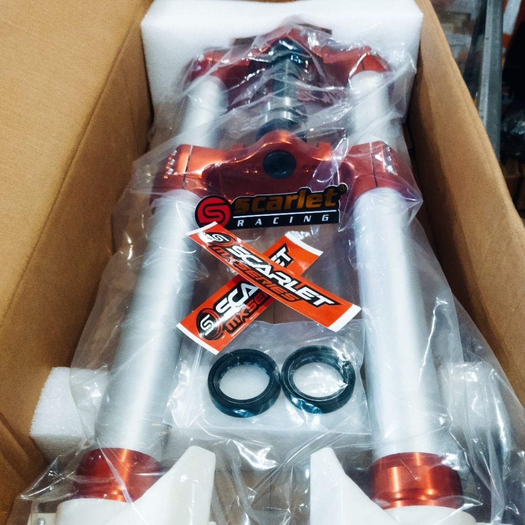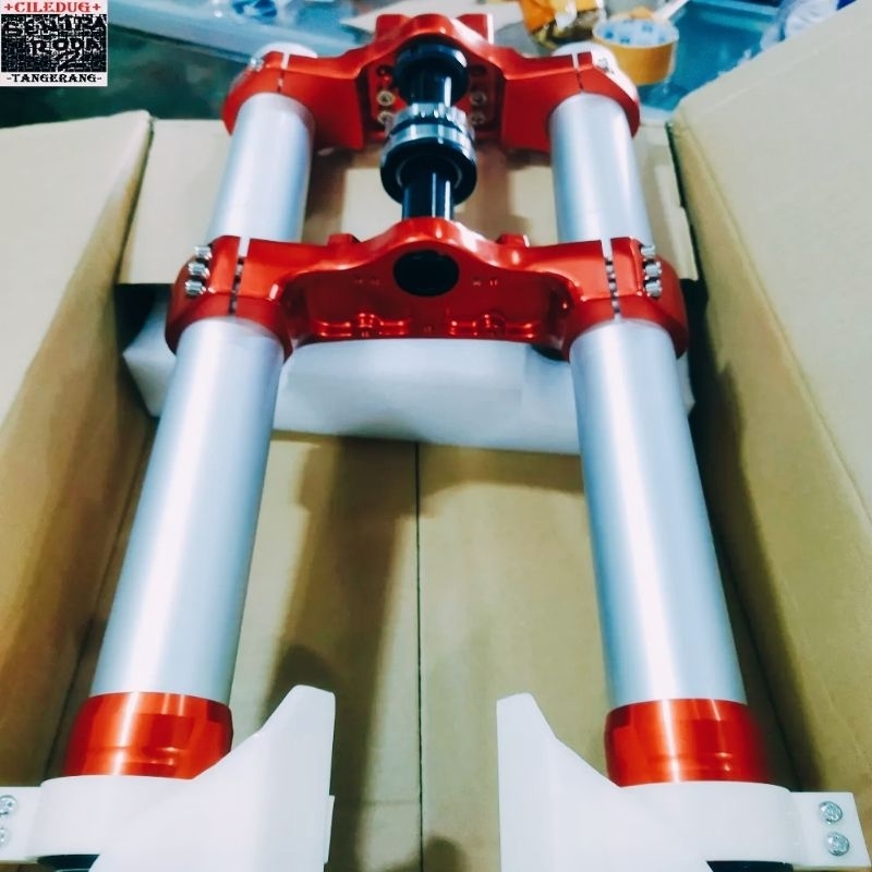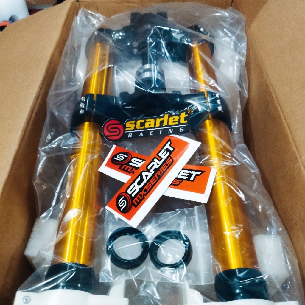 Up Side Down Shock Depan USD KLX Scarlet Full CNC Plus Bearing 3107 Anti Karat Ukuran 45x850mm
