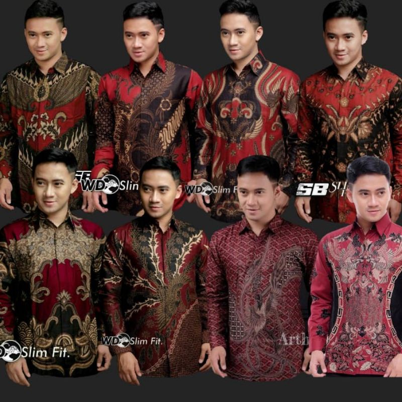 BAJU BATIK PRIA SLIMFIT LENGAN PANJANG MERAH SERIES SERAGAM KERJA KANTOR PRIA TJGRUP BATIK JUMBO SLIMFIT