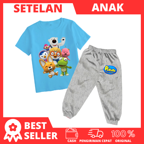 setelan joger kaos Pororo Anak cowok cewek Baju stelan anak laki perempuan setelan anak laki laki kekinian murah