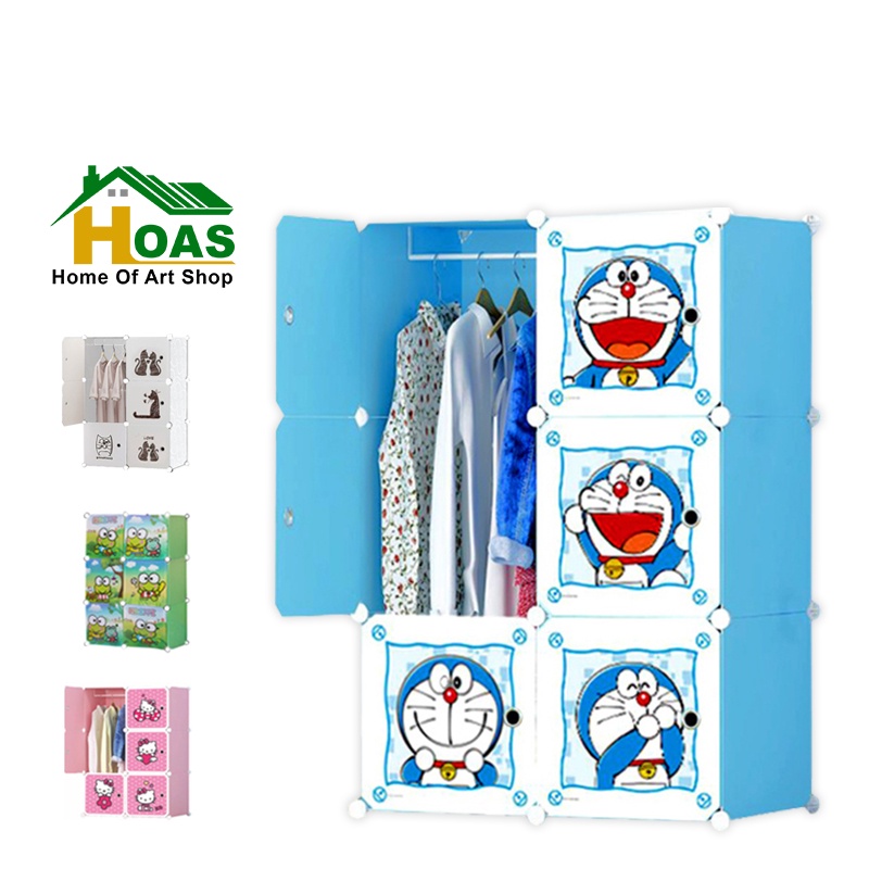 HOAS LEMARI PAKAIAN RAKIT PLASTIK ANAK 6 PINTU LEMARI PORTABLE RAK BAJU GANTUNGAN