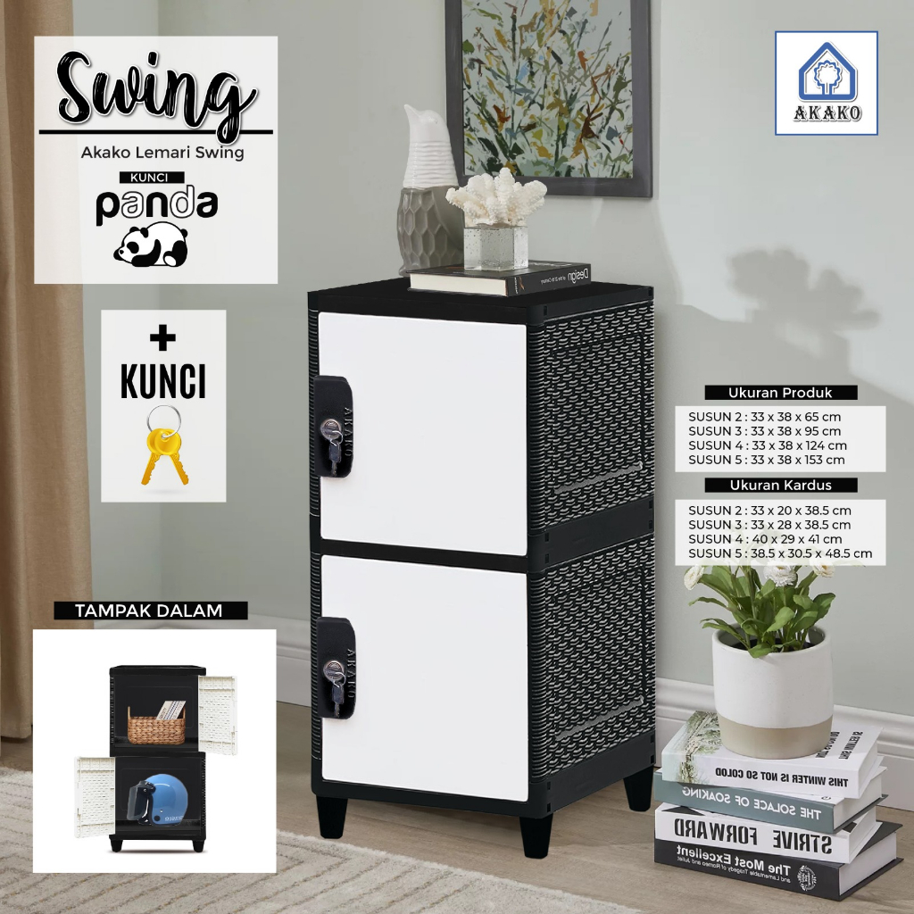 LEMARI PAKAIAN BAJU PLASTIK KUNCI PANDA HITAM PUTIH AKAKO LACI 2-5 SUSUN MURAH KOKOH BAGUS