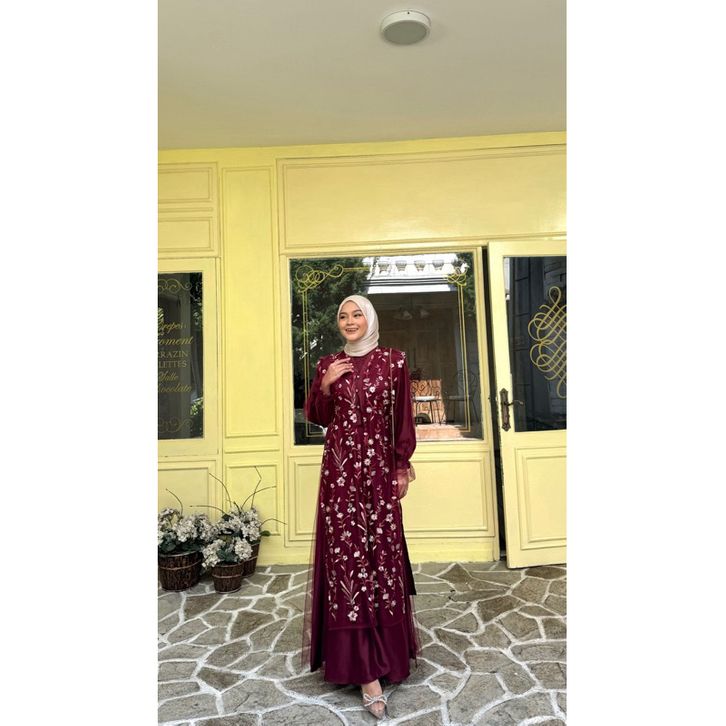 [Star] Natasha Dress Kondangan Modern Outer Brokat Garden Baju Wanita Kondangan Dress Maxi Elegan Terbaru Kekinian