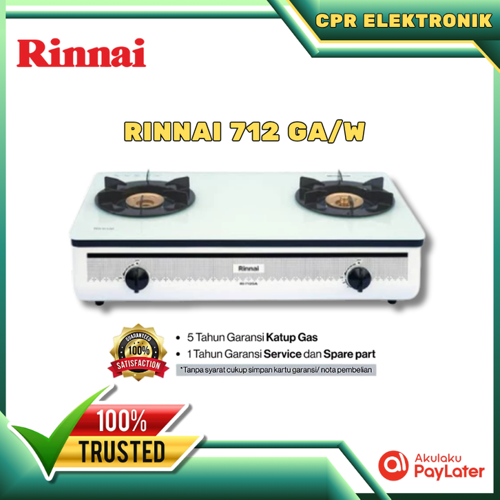 Kompor Gas Rinnai 2 Tungku RI 712 GAW Turbo Set Regulator Terbaru Original - Official Store