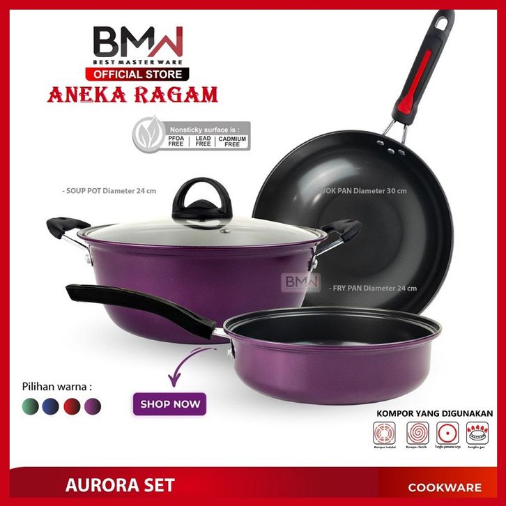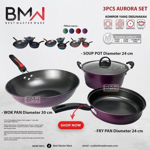 Kitchen Set Teflon Panci set Aurora Wajan Penggorengan Wok Pan Kado Nikah fry pan BMW
